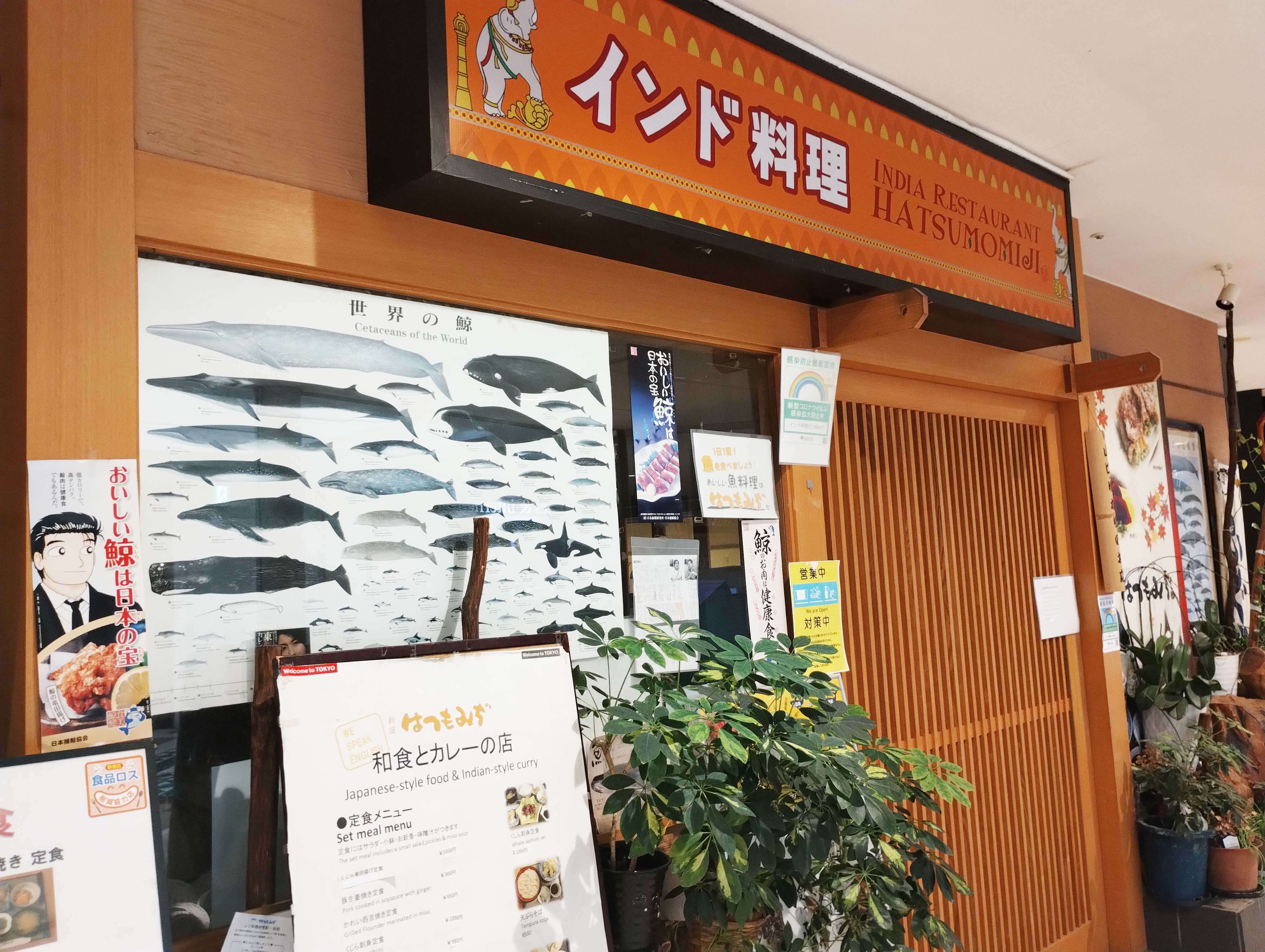 店の入り口にはくじらの絵が飾ってあり、メニューには「くじらカレー」の他、