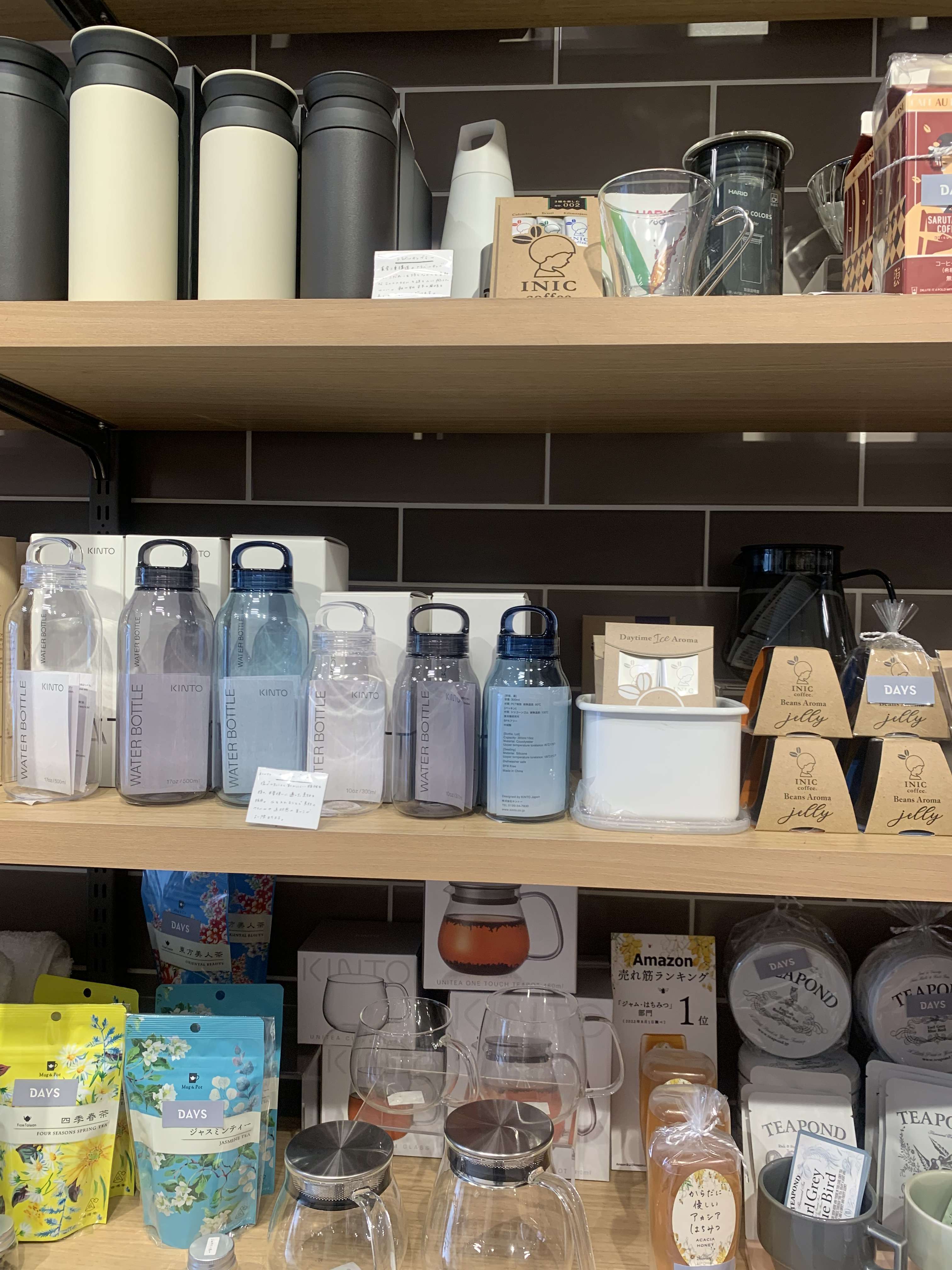 中に入るとトレンドな調理器具からかわいいティーセット、靴下、子供服など盛りだくさんです。