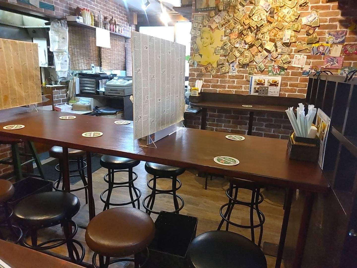 内装もアメリカン。使われているコースターも可愛らしいデザインでした!キッチンから良い匂いが漂ってくるのでより食欲をそそります。。。