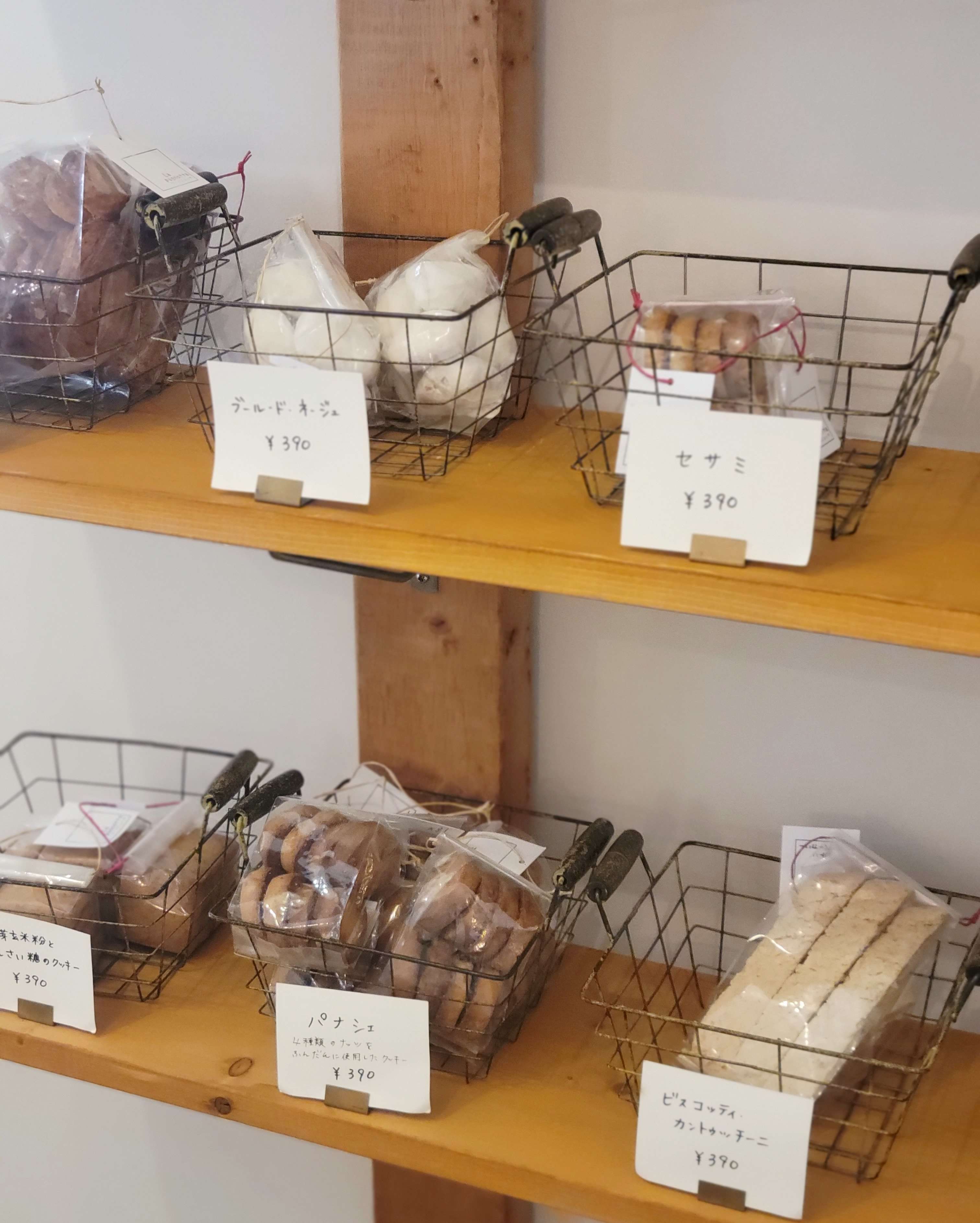 店内のカウンターにはずらっとパンが並び、パン屋さんのイメージが強いですが焼き菓子のラインナップも充実しています。
