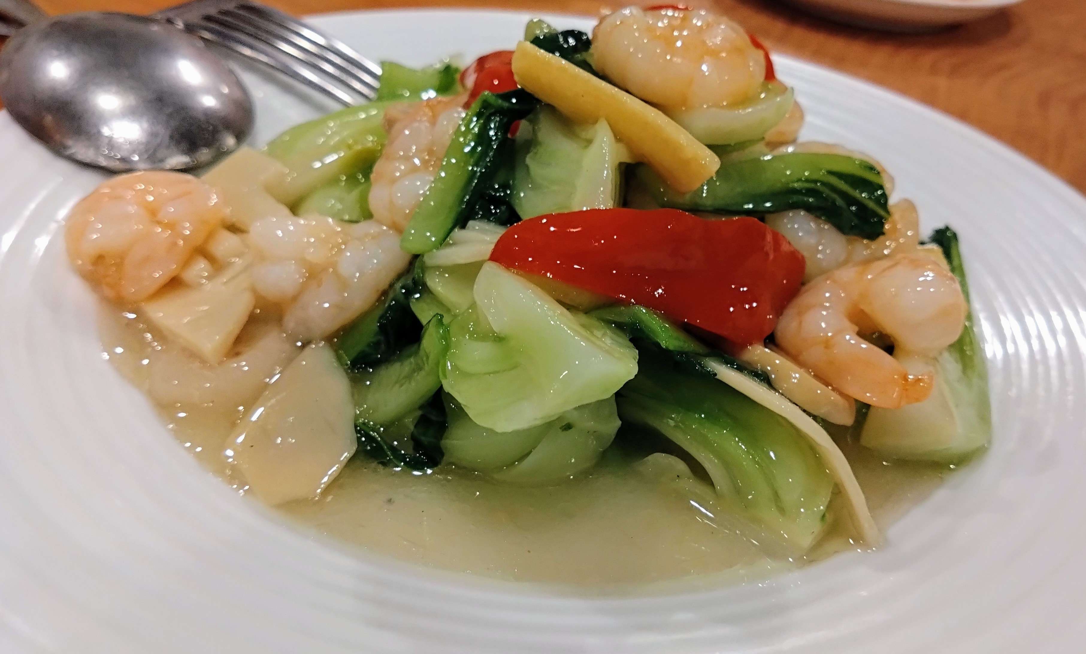 前菜からはじまり、芝エビと野菜の塩炒め、豚肉とピーマンの細切り炒め、石焼麻婆豆腐、揚げ物、点心、白身魚のチリソース炒め、チャーハン等が次々を運ばれてきて、味はもちろんコスパの良さにおどろきました。