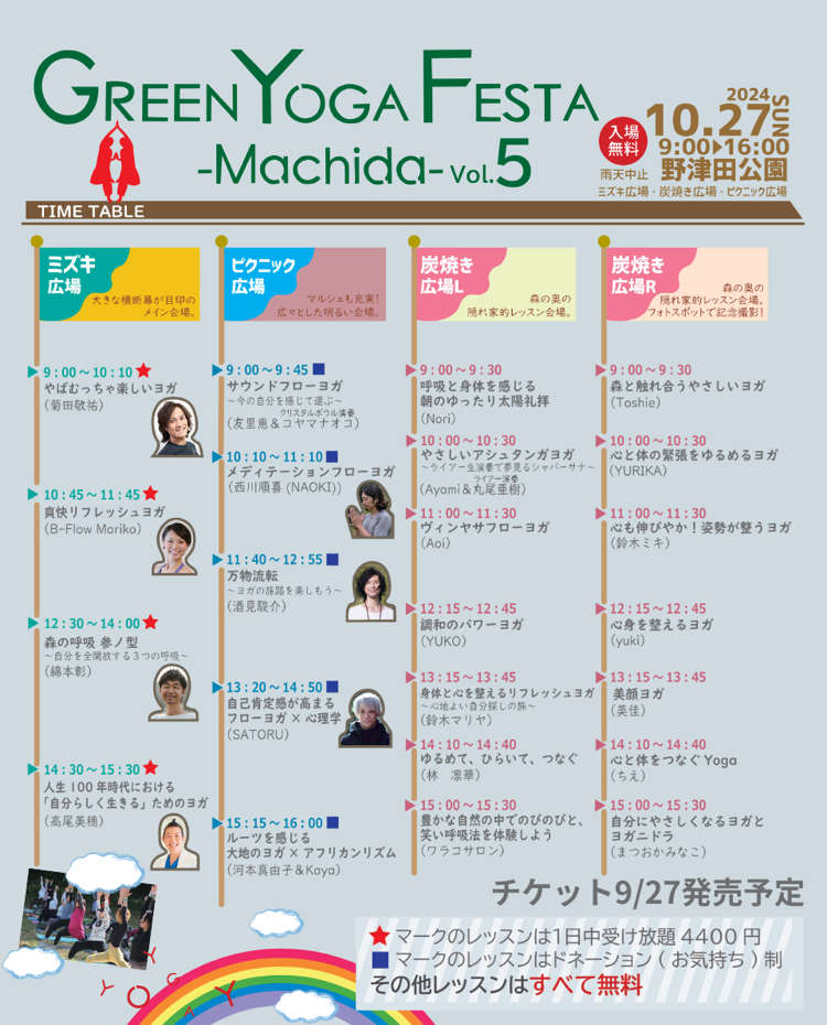 2024年10月27日(日)に野津田公園で「グリーンヨガフェスタ町田Vol.5」が開催されます!