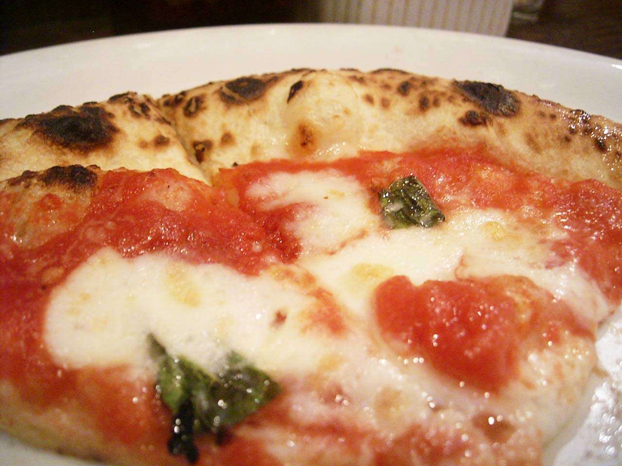 窯でじっくりと焼かれたピザは、外側はカリッと、中はふんわりとした食感が特長で、その香ばしさは他のお店では味わえない一品です。特におすすめはマルゲリータで、価格は979円。トマトソース、モッツァレラチーズ、バジルがトッピングされています。鼻の中にはチーズよりも焼きたての小麦の香りが広がります。