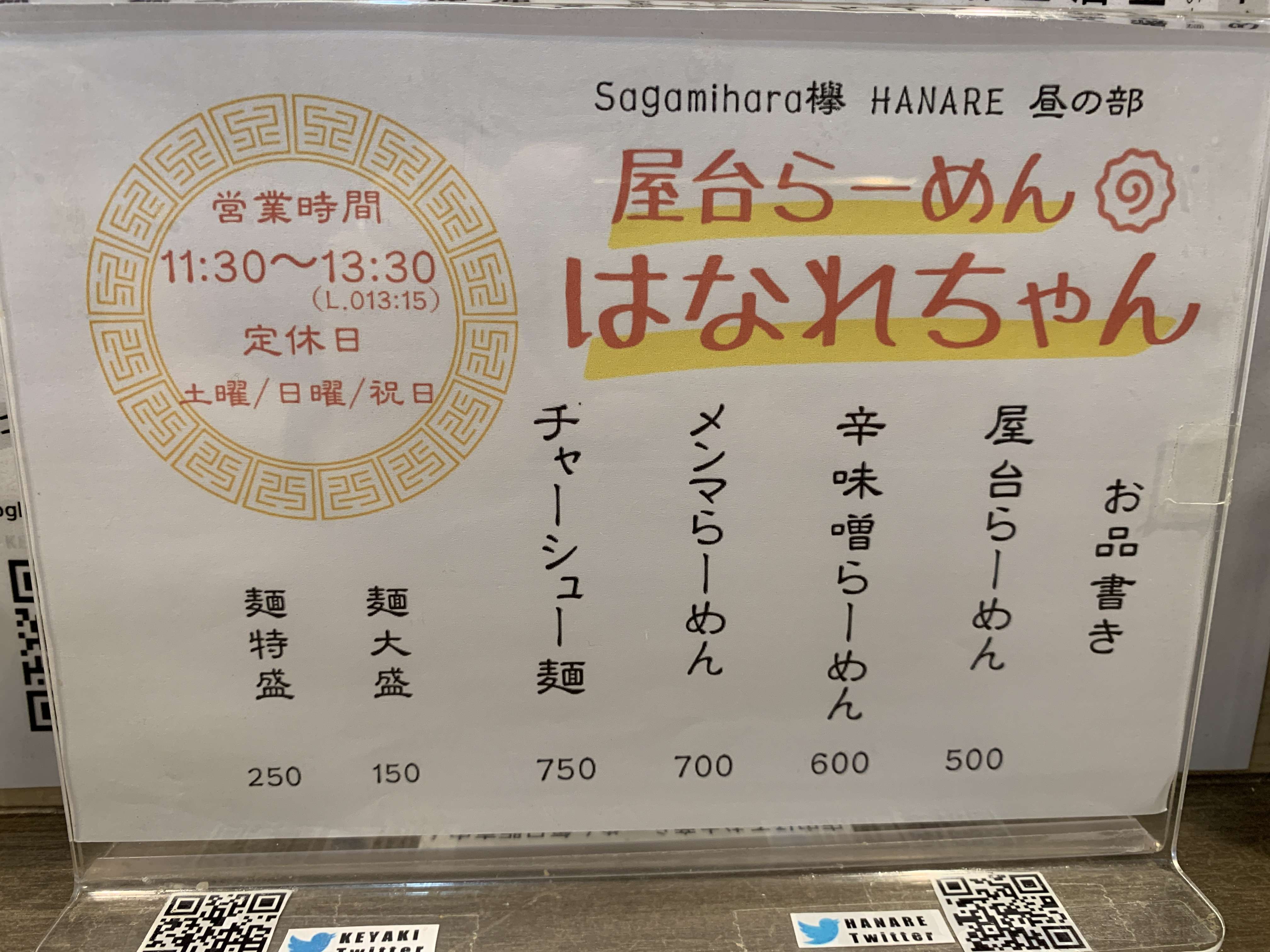 その店舗でランチタイム営業しているのが「屋台らーめん はなれちゃん」。