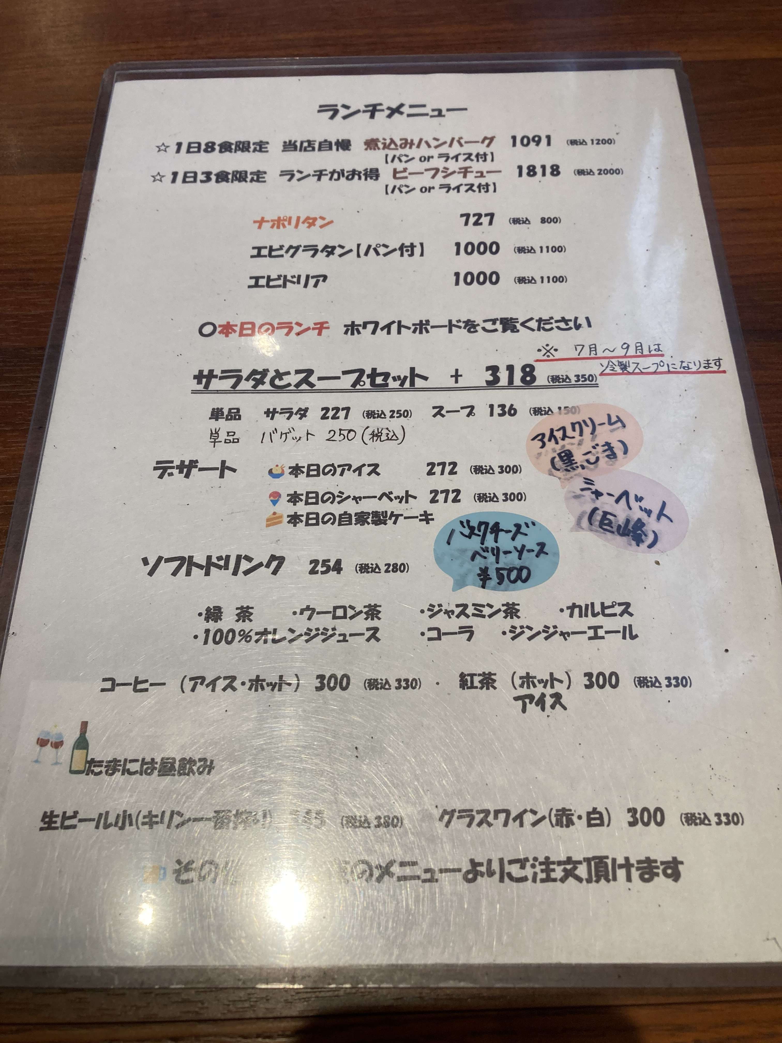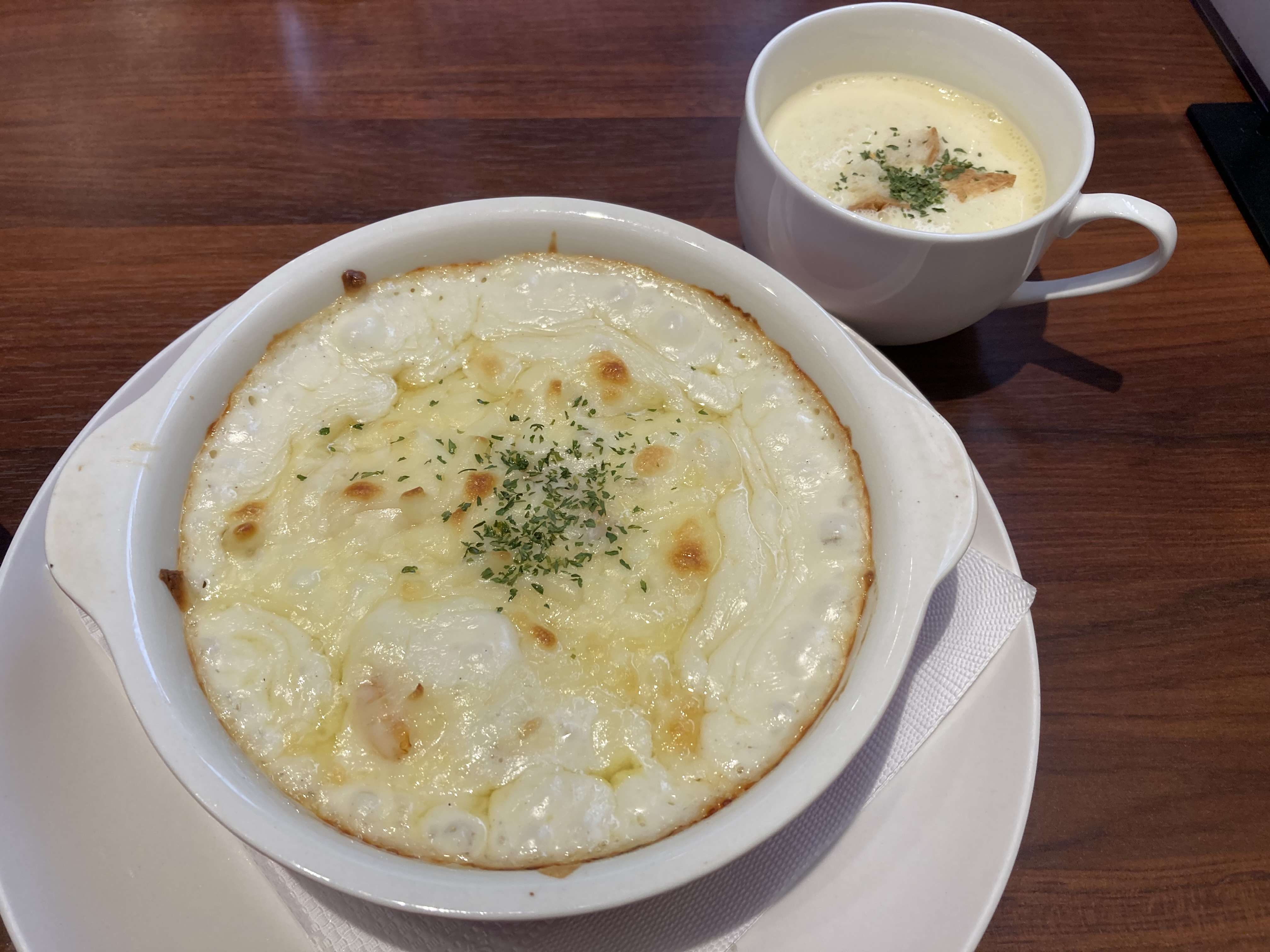 今回はエビグラタン(パン付)に追加でスープを頼みました。