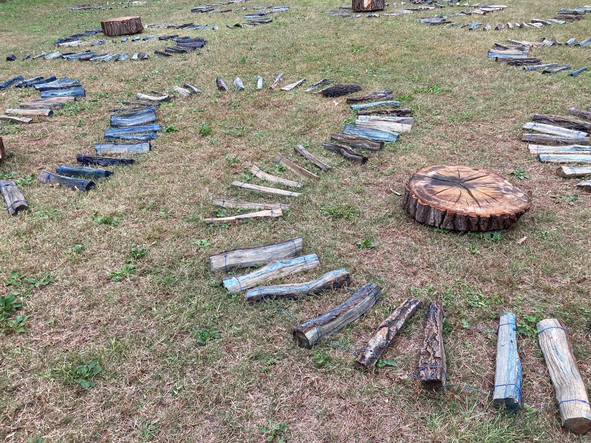 さらに登っていき西口には「薪の花のランドアート」のインスタレーションが。