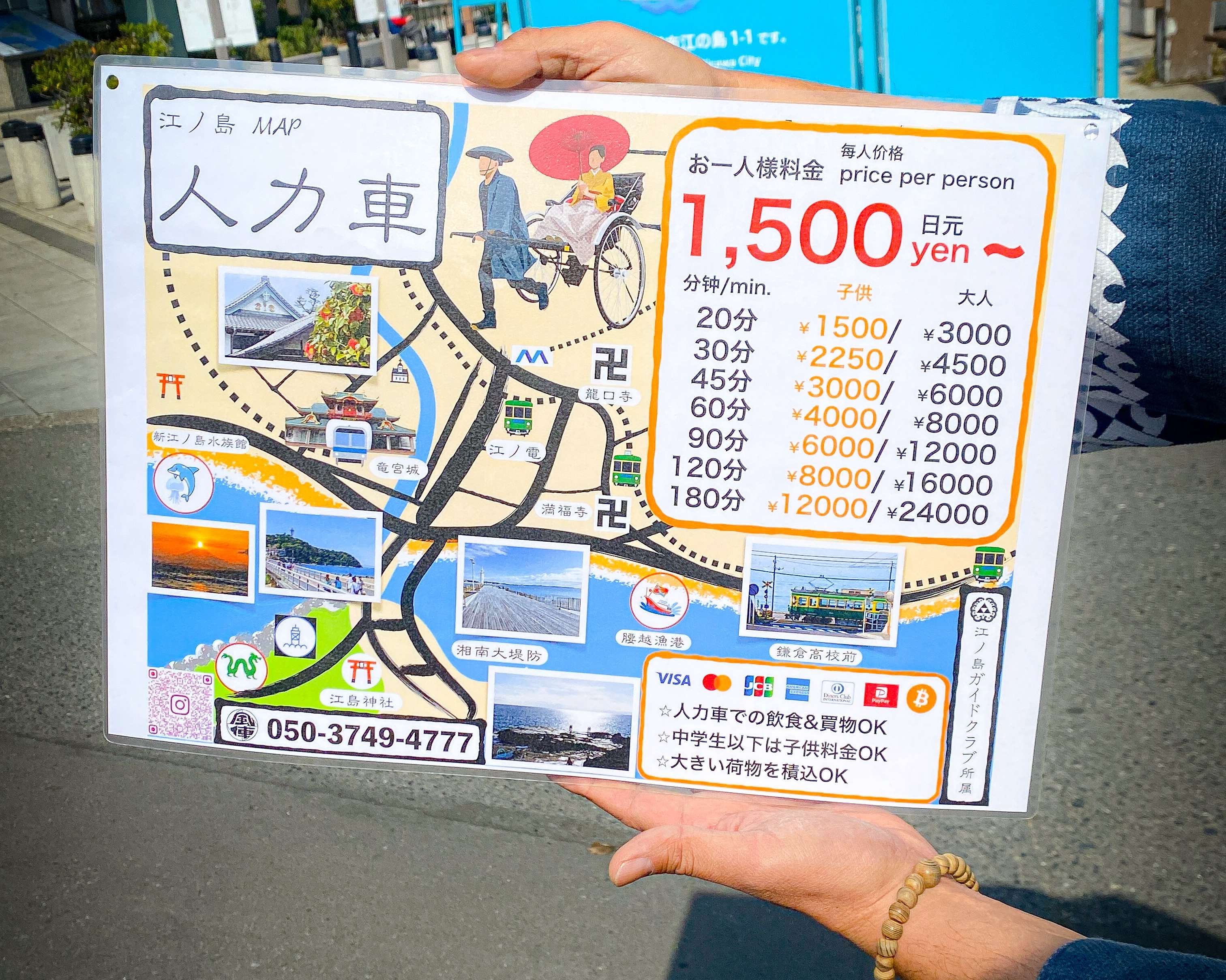 日本で唯一、人力車で「江ノ島」までの通行を許可されている「かざぐるま」。片瀬江ノ島駅から徒歩約1分の場所をスタート地点に、江ノ島まで巡ってきたのでご紹介します。