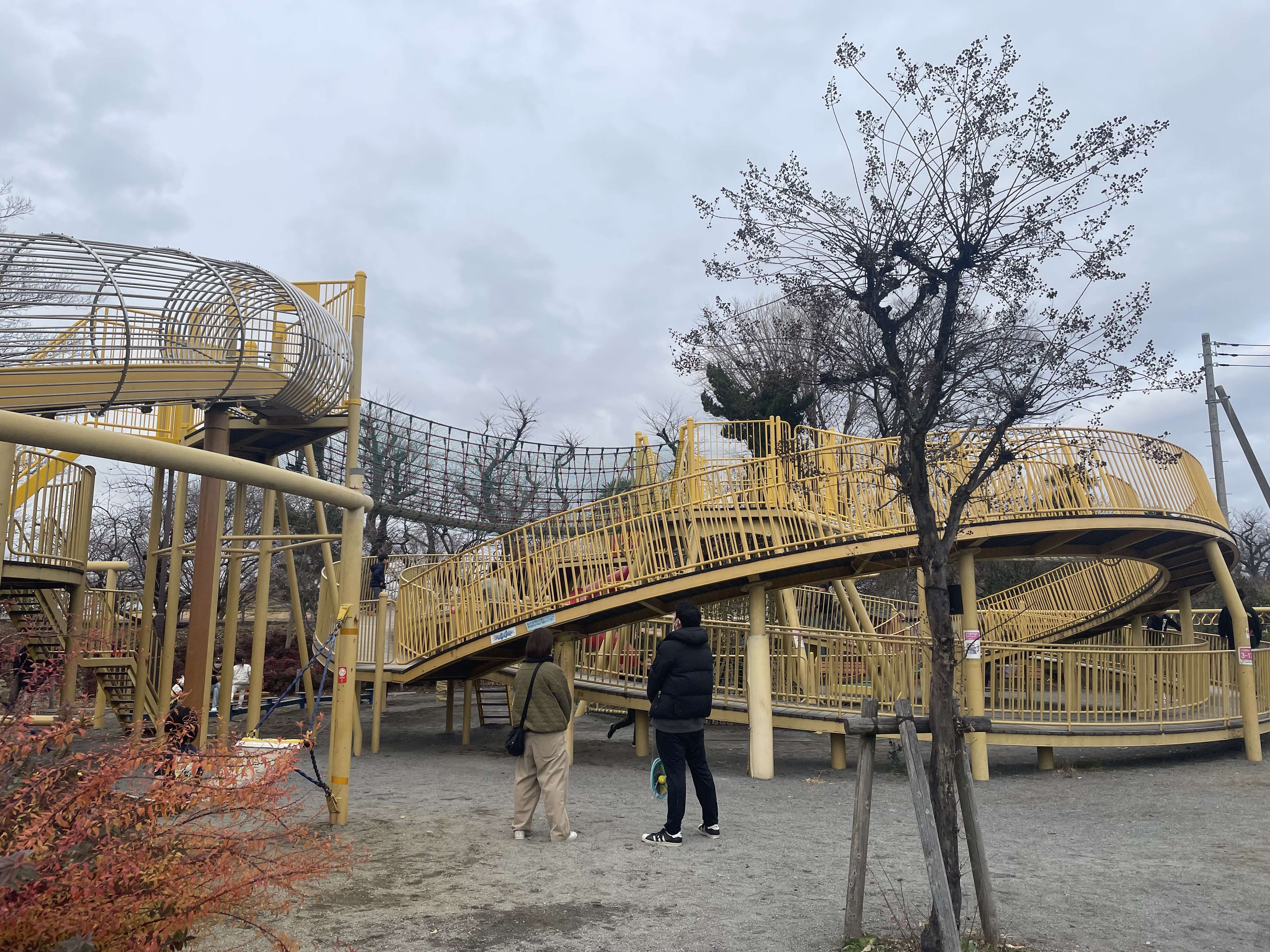 公園内には、大きな遊具、野球場、広場、お花がたくさん咲くイングリッシュガーデンなどがあります。