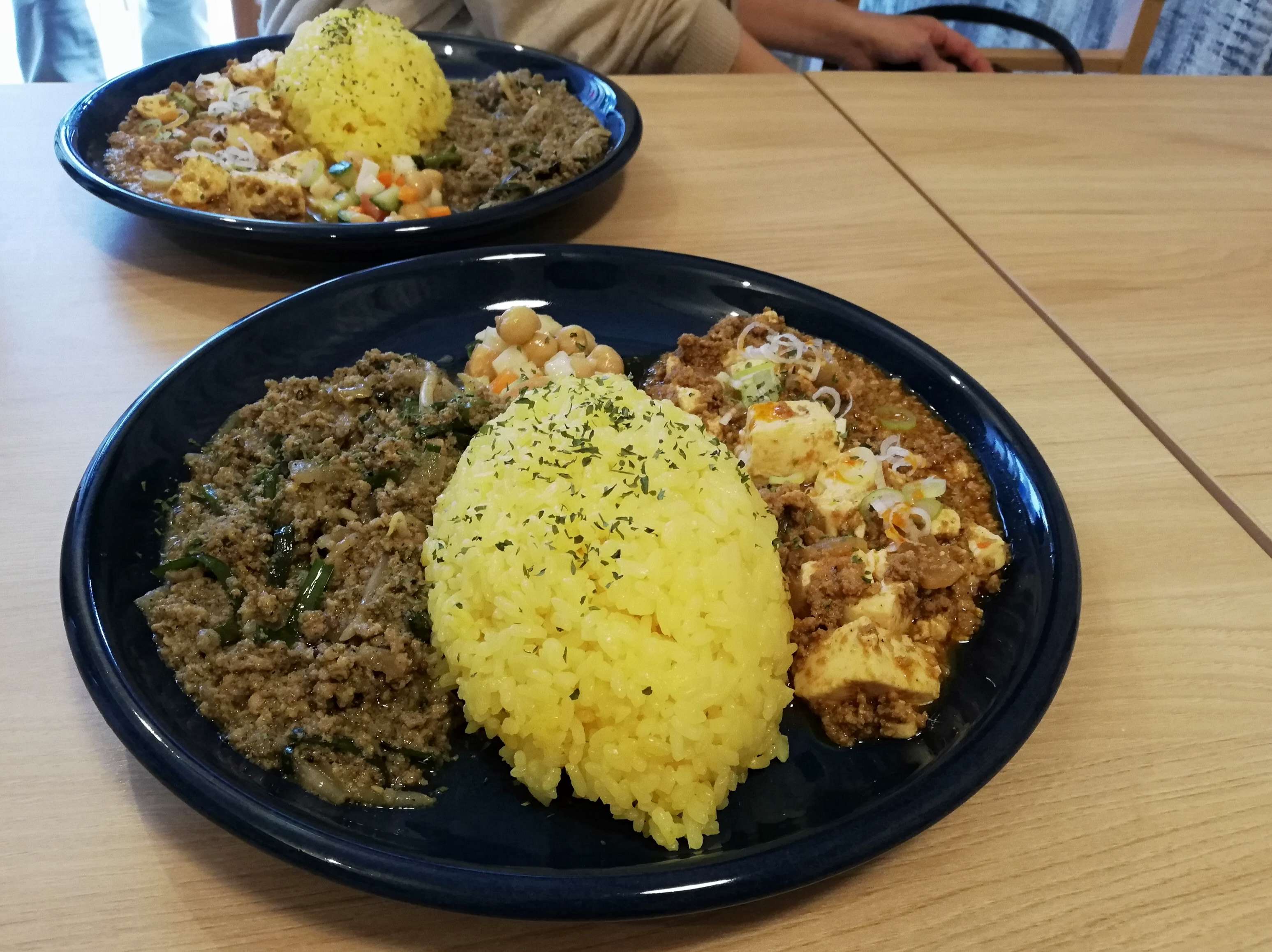 CURRY LOUNGEさんの特徴とも言える、2種類のカレーが一度に食べられるあいがけをお願いしました。