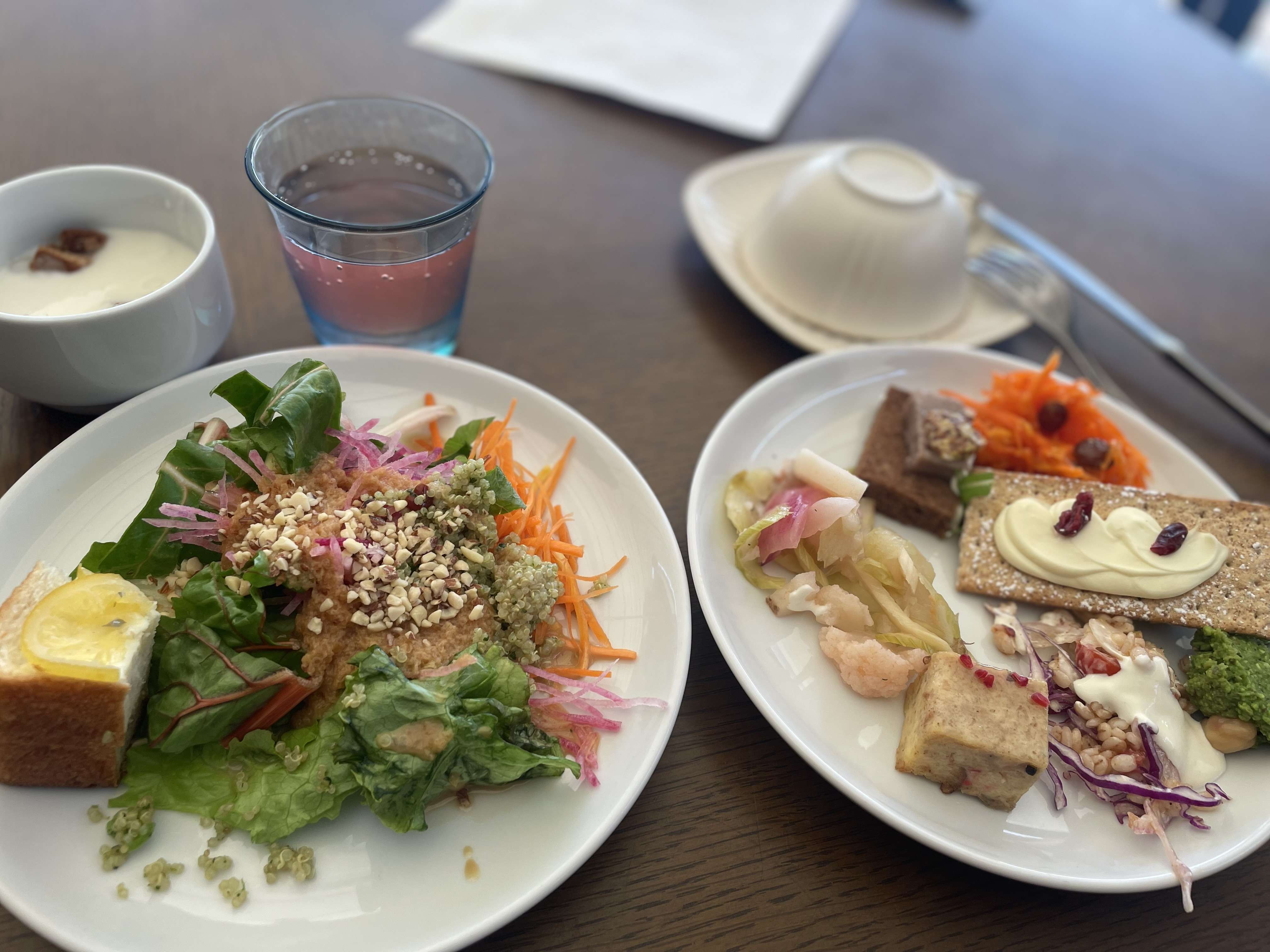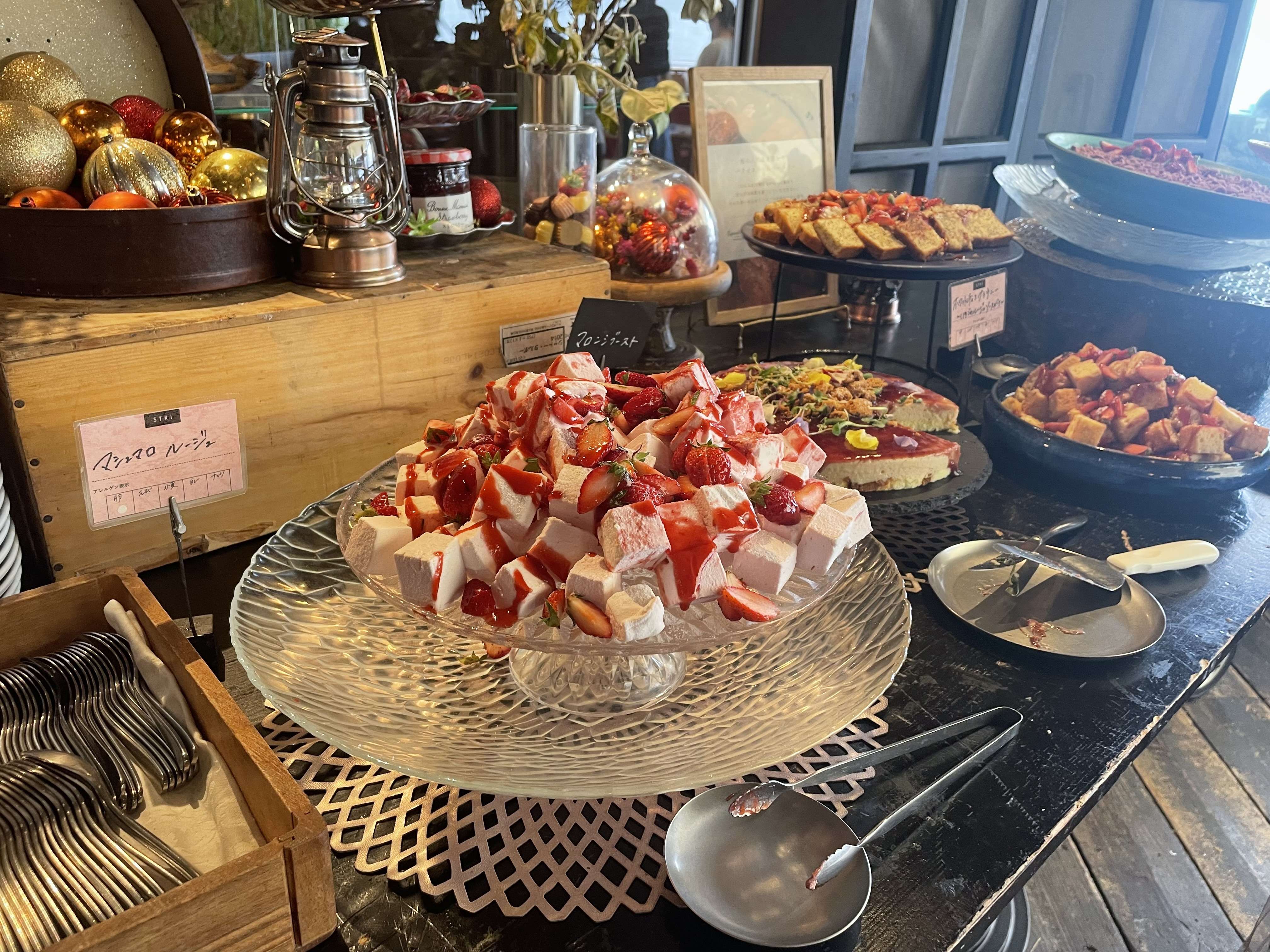 大人気のビュッフェでは、焼きたてピザ、パスタはもちろん、地場産のお野菜などを使ったお料理、こがさかベイクのパンなどが並びます。