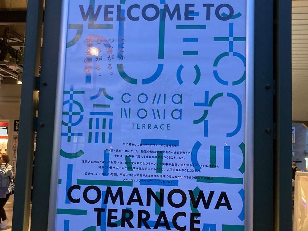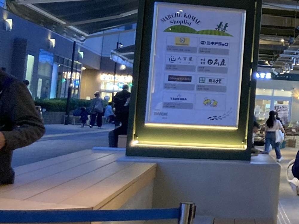 看板を見ると、「コマノワテラス」といって、テイクアウトしたものを食べたり、おしゃべりしたりして、自由に過ごせる空間だそうです。