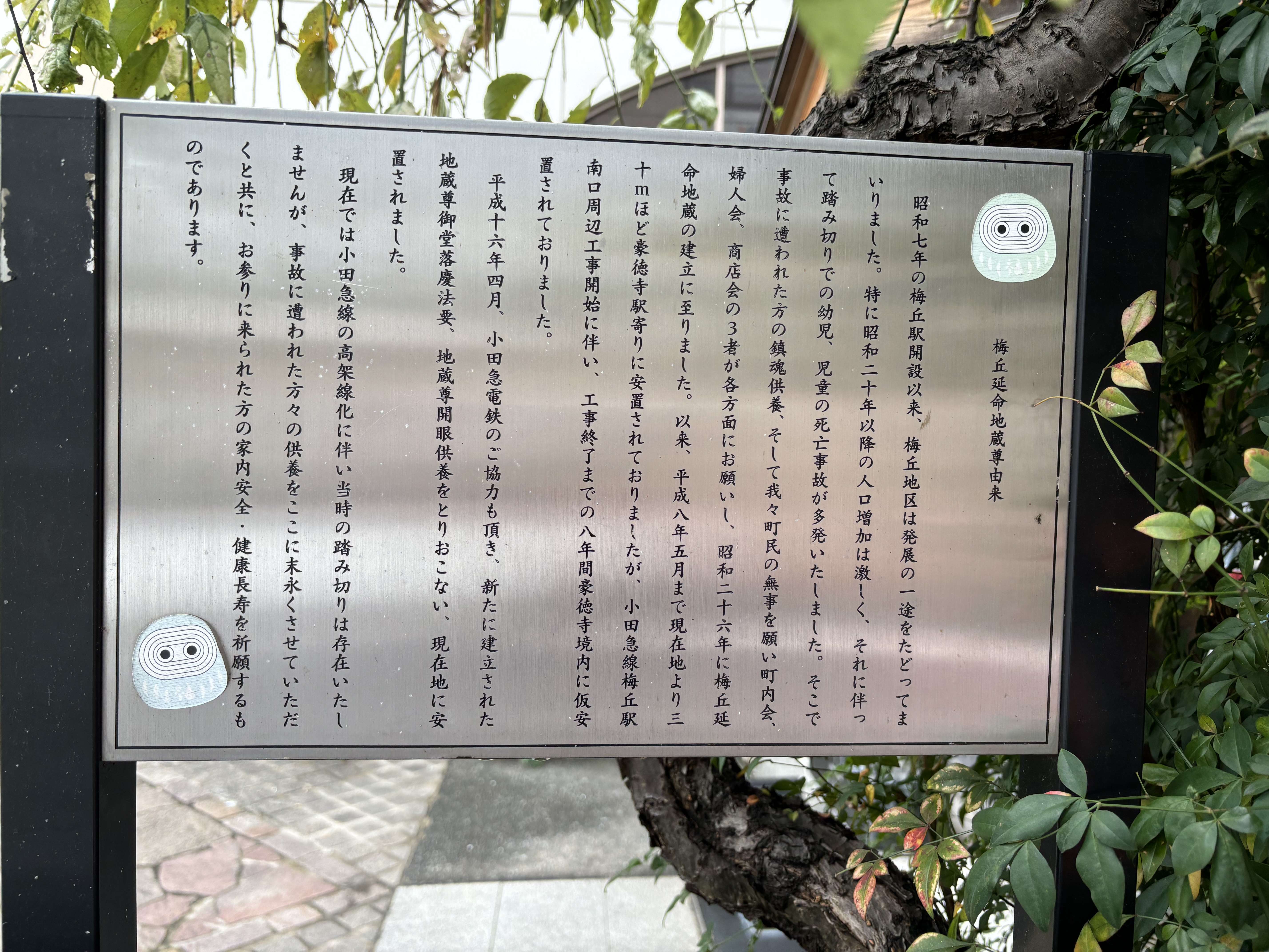 梅ヶ丘駅真横にいらっしゃるお地蔵さま。お参りされている方お掃除されている方たびたびお見かけします。ちょうちんが点灯していると一層厳かな雰囲気になります。お優しそうなお地蔵さまのお顔を拝むと気持ちも和みます。