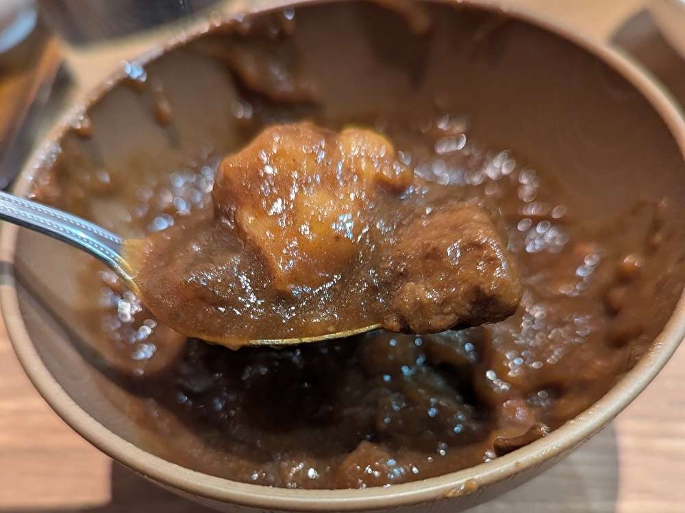 お肉がゴロゴロいっぱい入っていて中辛味でおいしいです。