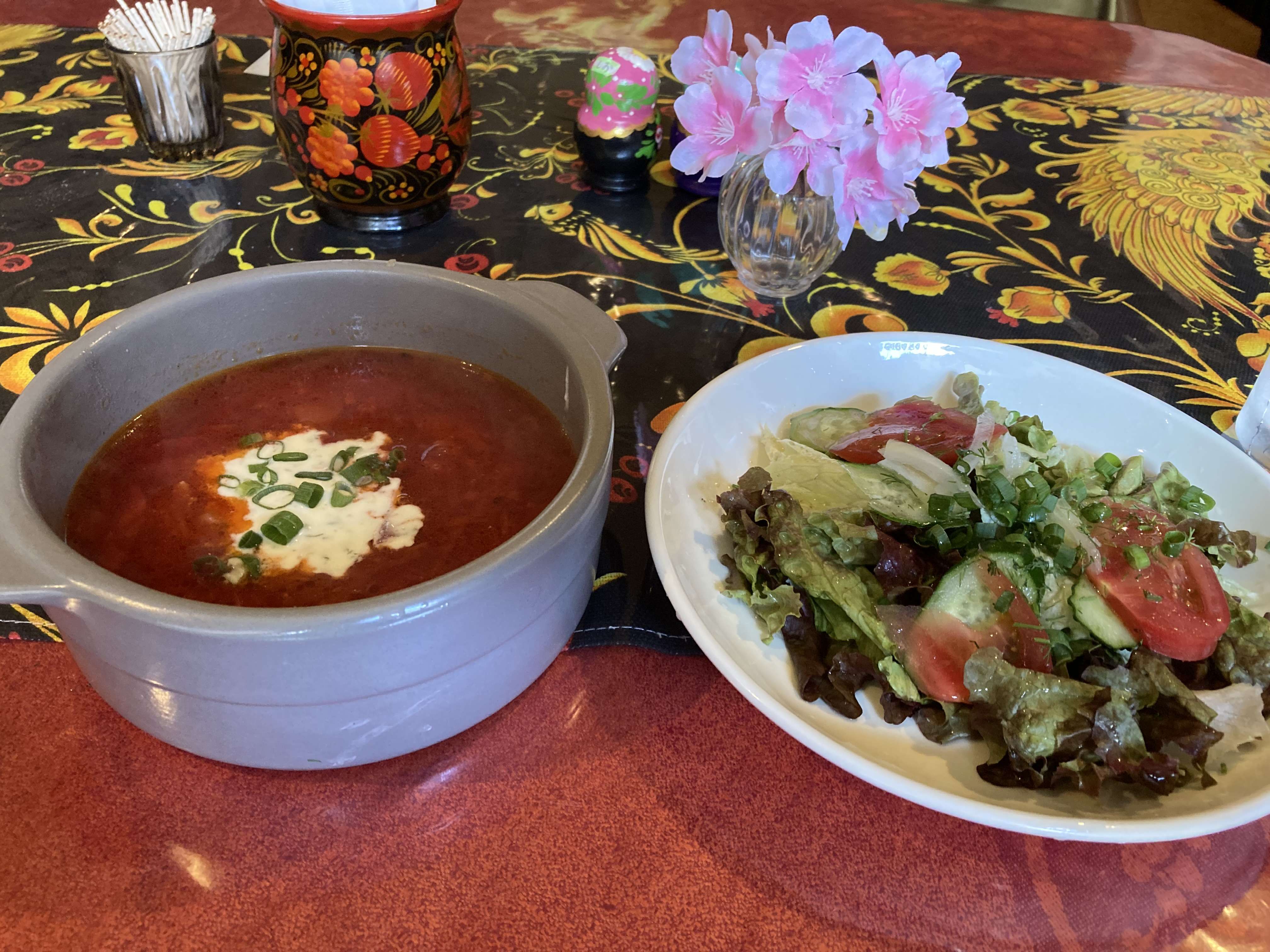 メインはボルシチ、ペリメイ(ロシア水餃子)、ガルプチ(ロシアロールキャベツ)から選びます。