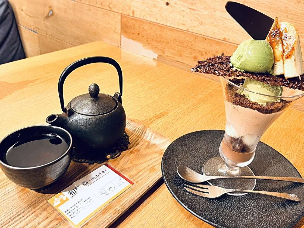こちらのカフェはココロと身体にやさしいをコンセプトとする『神楽坂 茶寮』がオープンした癒しの日本茶カフェ。日本各地のお茶や和紅茶を飲めることはもちろん。抹茶やほうじ茶、黒蜜やきなこ、季節のフルーツなどを使った美味しい和パフェや和ケーキから、うどんや和風パスタなどの食事のメニューまで揃っています。また、アルコール飲料も北海道麦酒醸造などこだわりのメニューです。