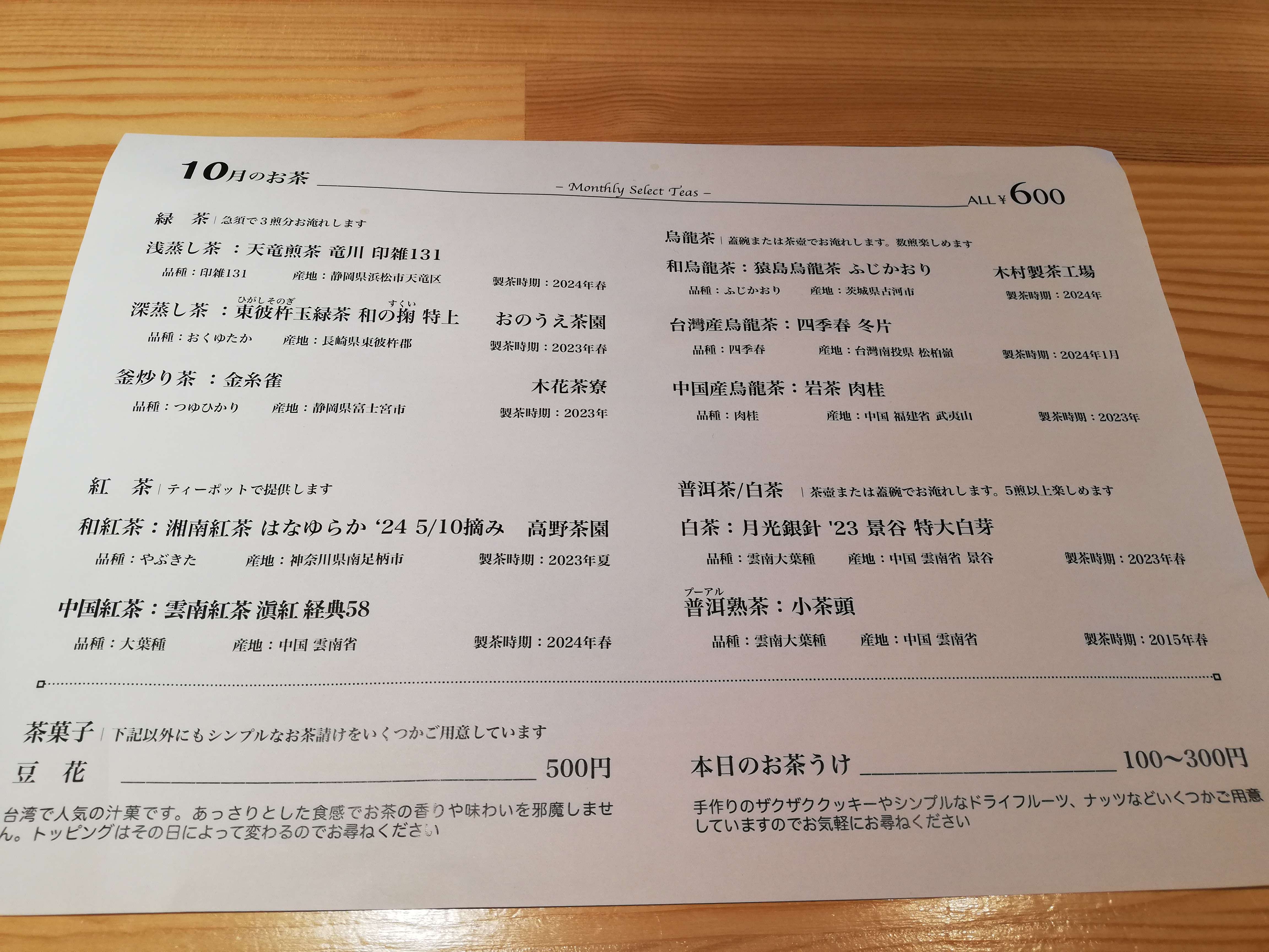 なんと、店主さんが作られたお茶まであるので驚きです。