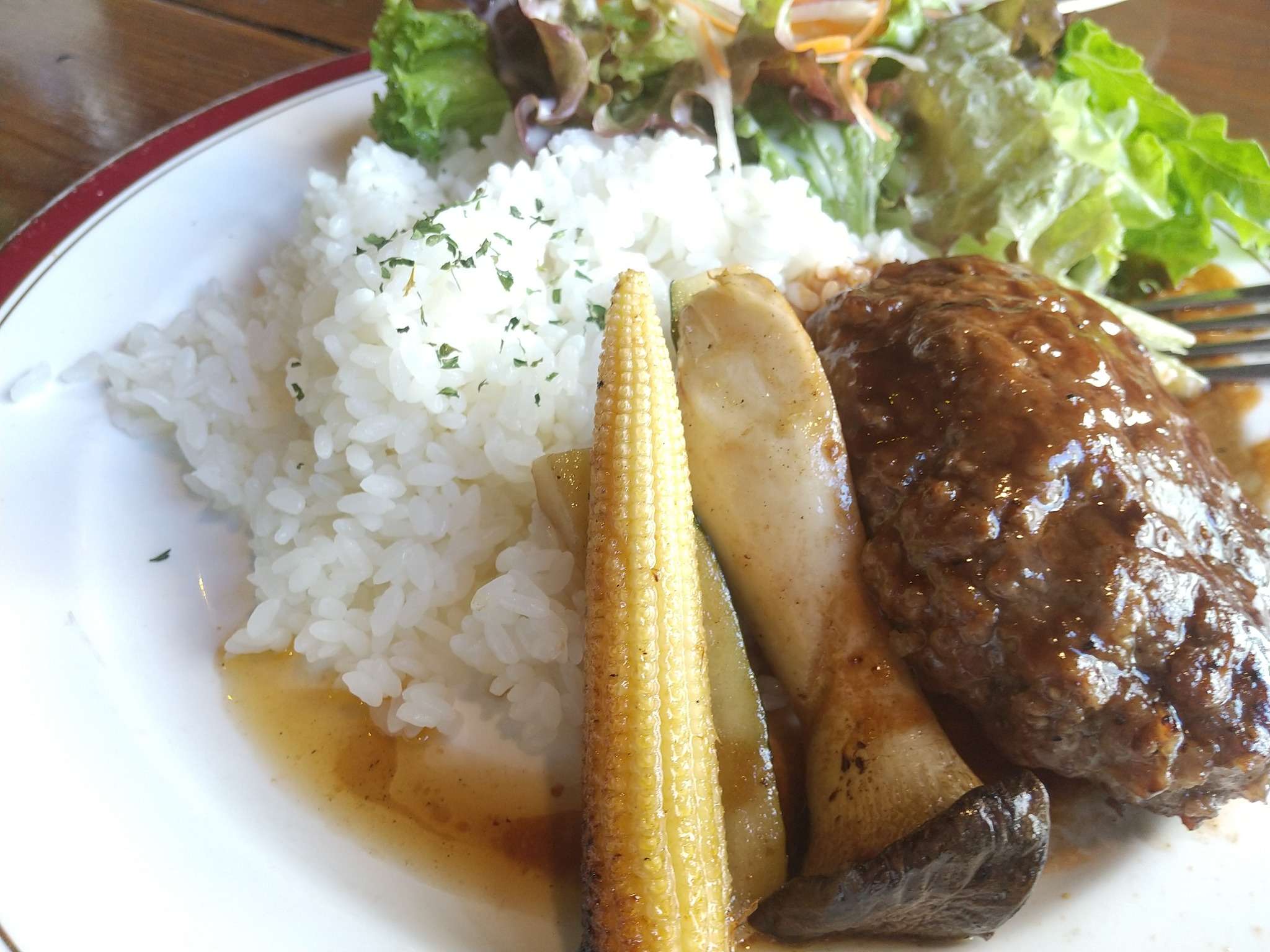 お肉はジューシー、サラダもいっぱい。お腹もおいしさも満たされます