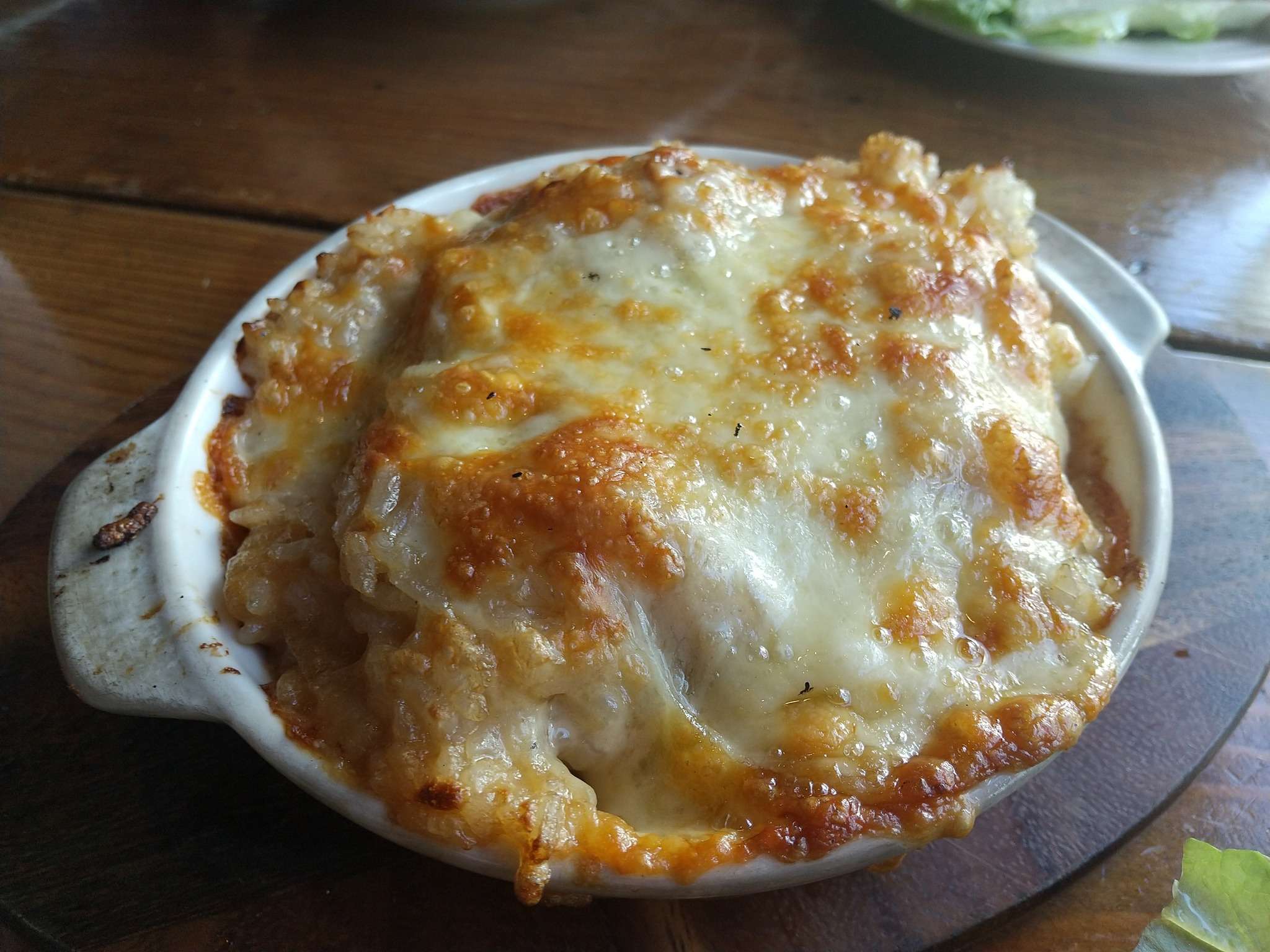 ホワイトソースの中には和の肉じゃがとご飯がつまってます。