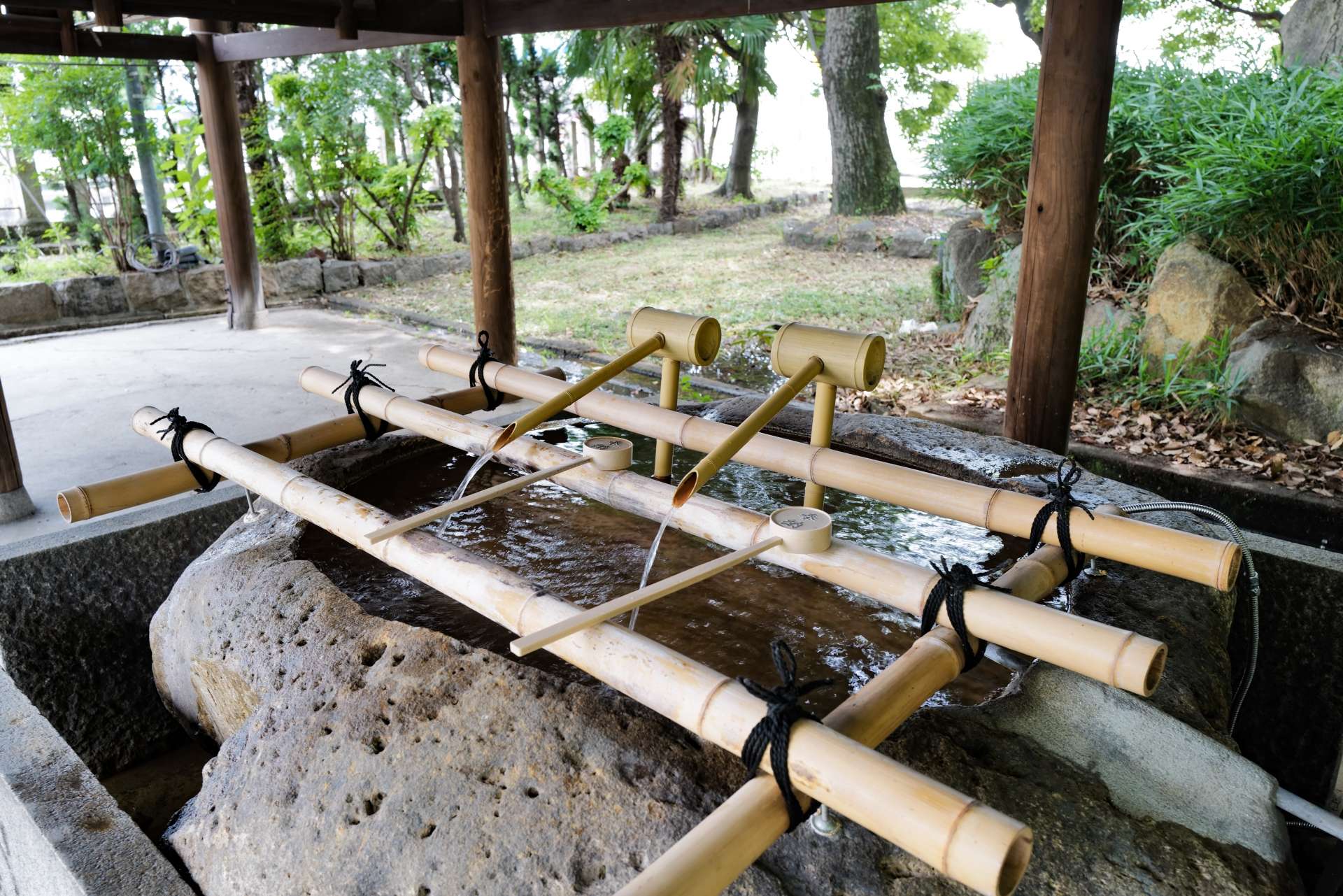 境内の池には3匹のカエルの石像があります。おなかにはそれぞれ「若」「銭」「福」の文字が刻まれ、若さ・財産・幸せが返ってくると言われています。