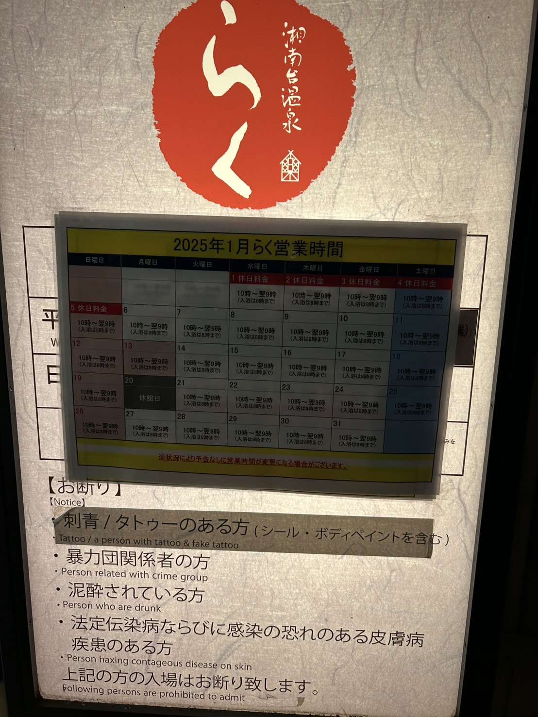 湘南台駅より徒歩2分の駅近、駐車場完備の湘南台温泉「らく」に行ってきました!
