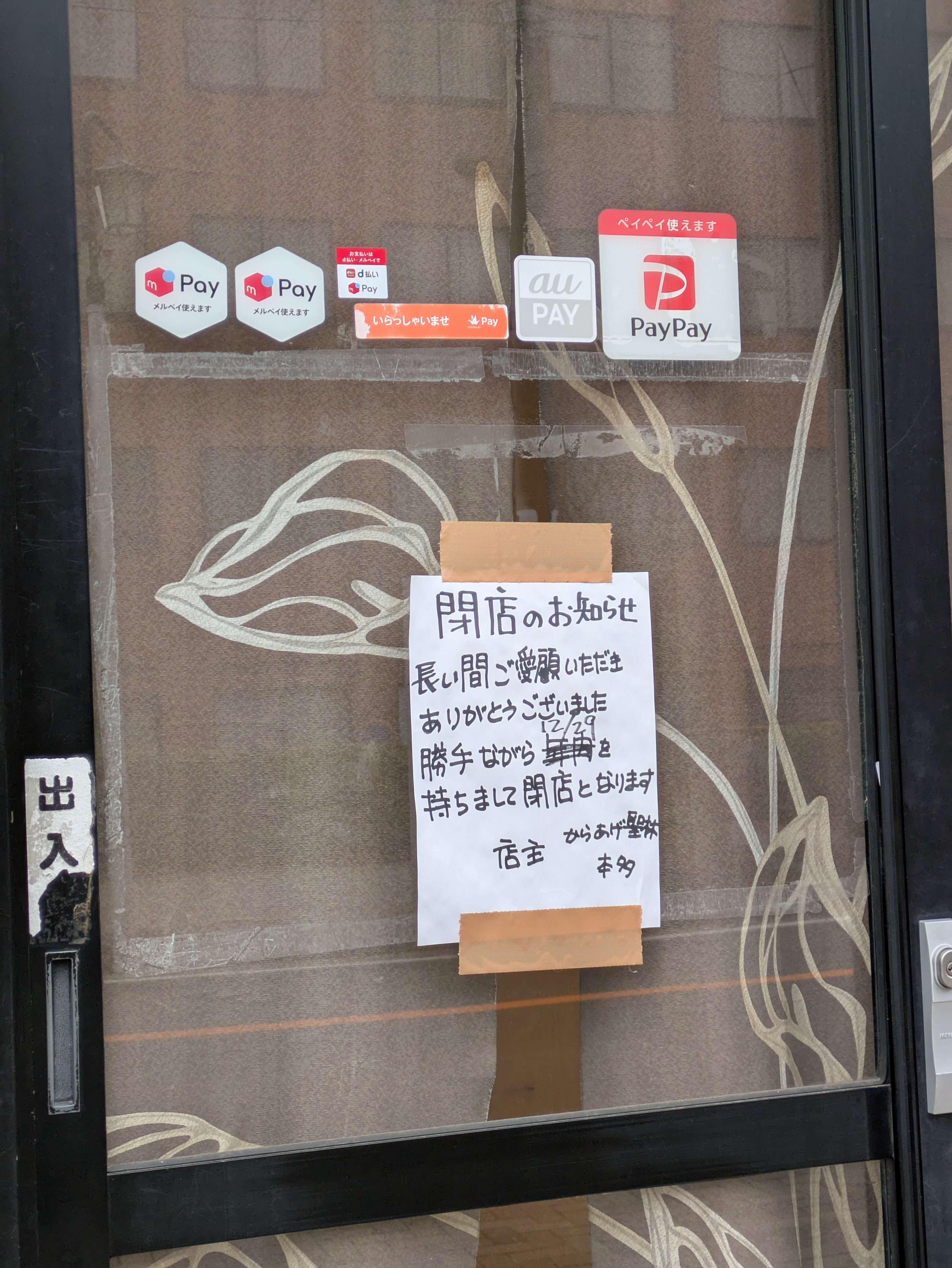 鶴巻温泉「からあげ聖林」閉店