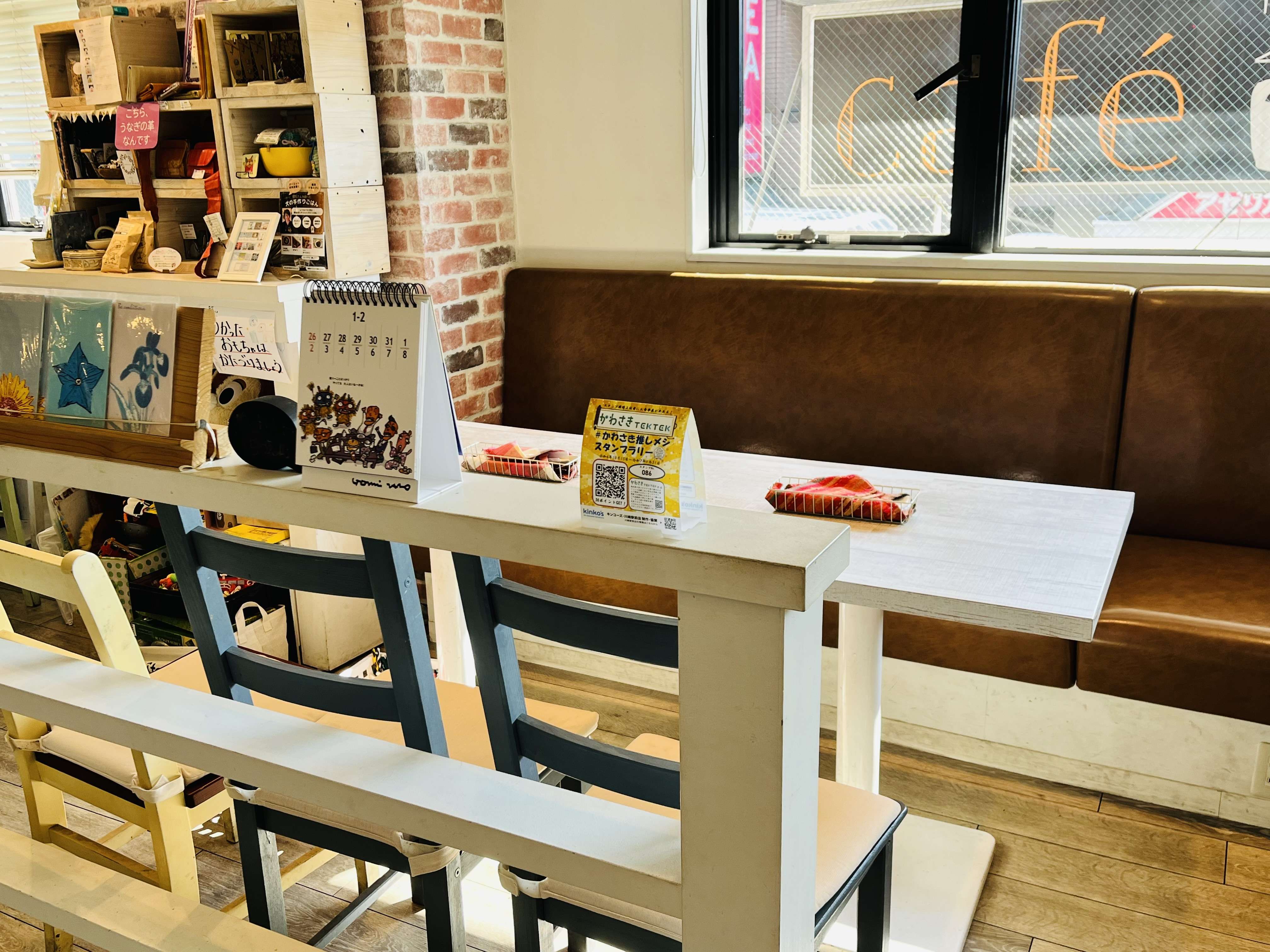 店内への入り口はレンガの柄の自動販売機が目印!お店は「子ども食堂」やイベントを開催することもあるそう。また、お店入り口には不要になったけれどまだ使える物(食器など)を置くスペースがあり、自由に持ち帰ってもらっているそう。(持ってきた物を置くこともできますが、その旨もお店の方お伝えください)こちら、利用している方が多い人気のサービスとお店の方が教えてくださいました。気になる方はぜひチェックしてみてください!