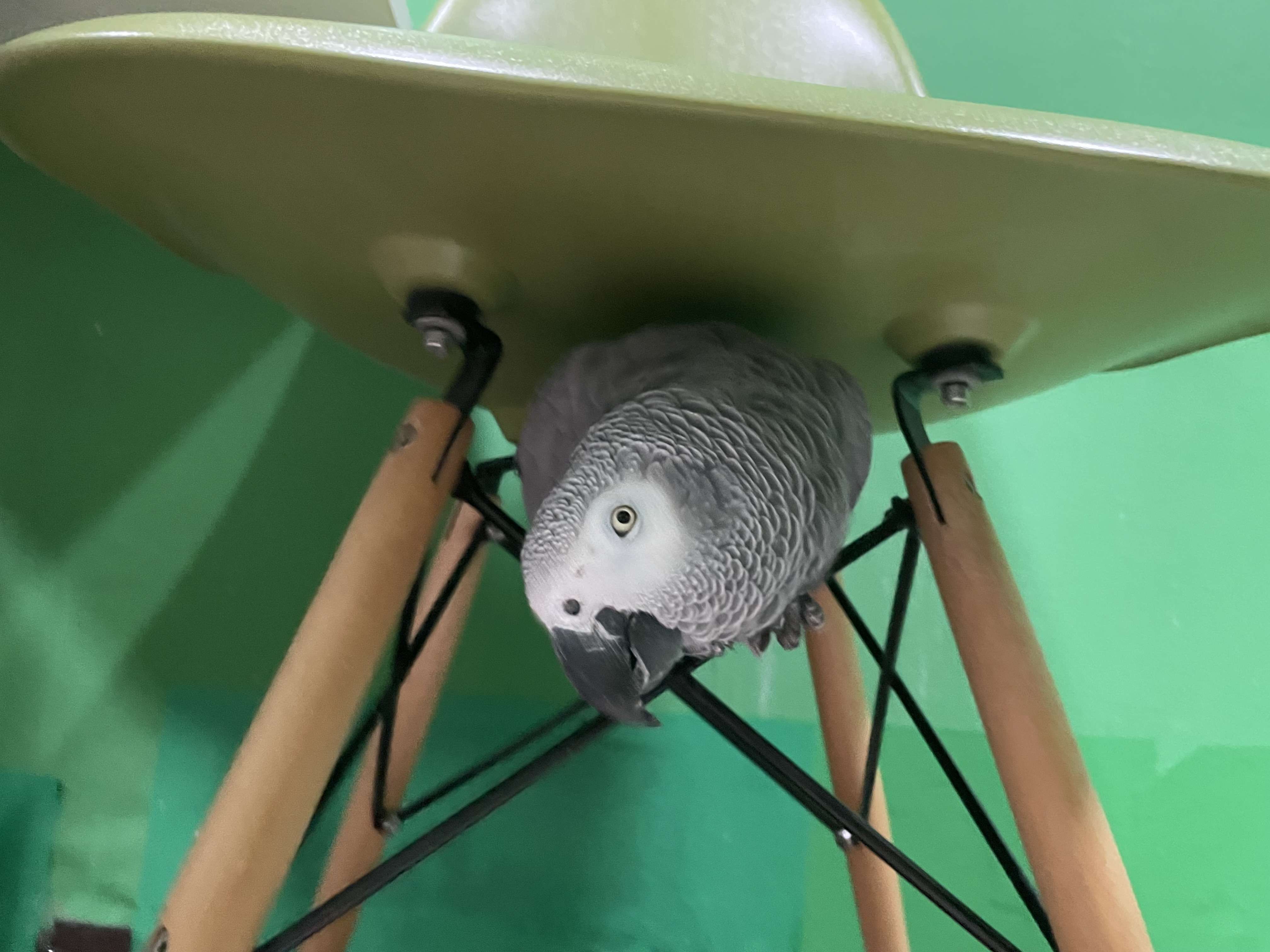 椅子の下にいるのを発見。かくれんぼが上手ですね。