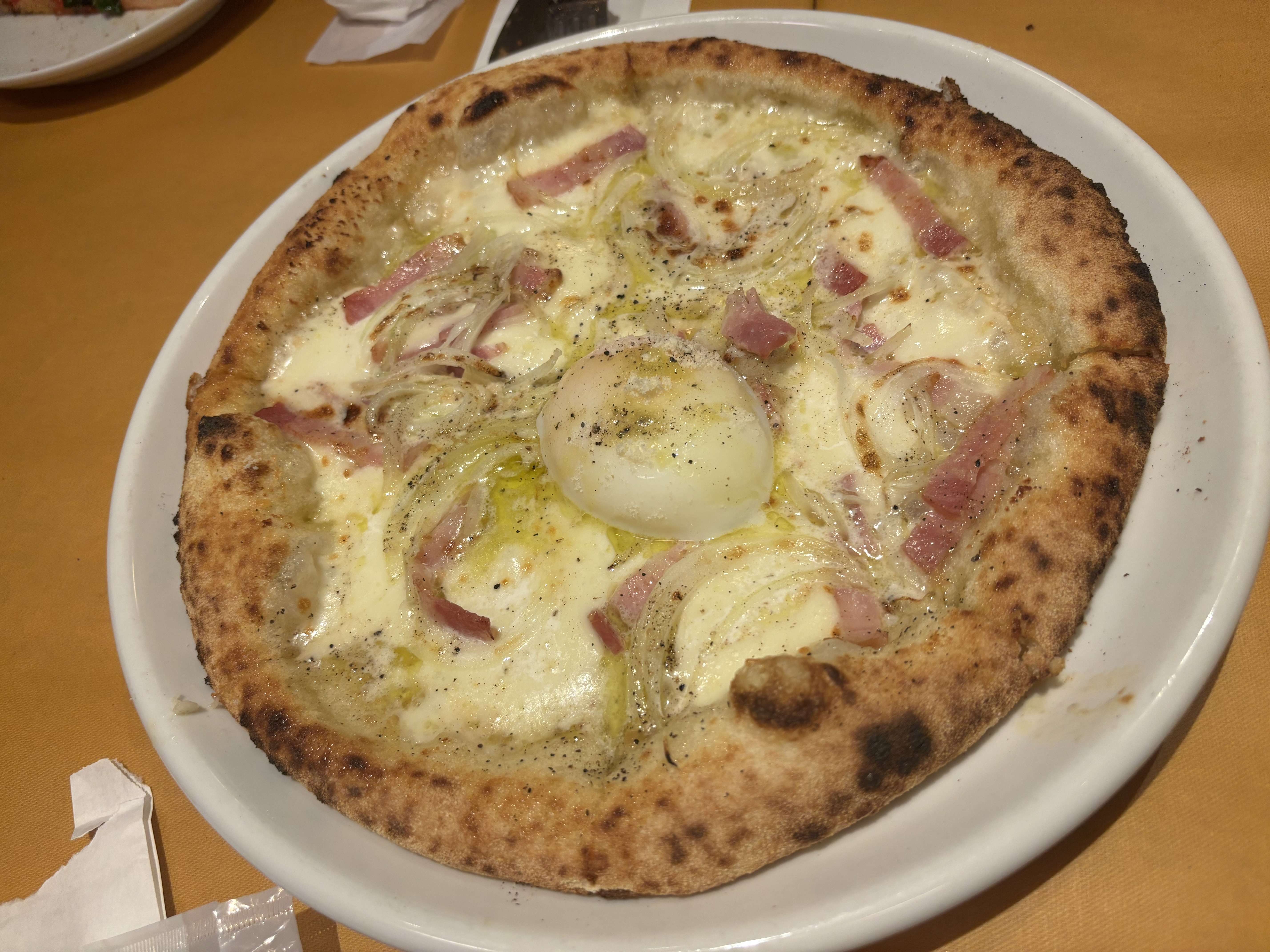 とても美味しいピザ屋さんでした。ディナーで伺いサラダと焼きたてピザをいただきました。ピザの生地がもちもち、なのにふわっさくっ、最高でした。イタリアンらしい明るいお店の雰囲気もすてき。お店横にある冷凍ピザ自動販売機がとても気になっていて今度トライしてみたいと思います。