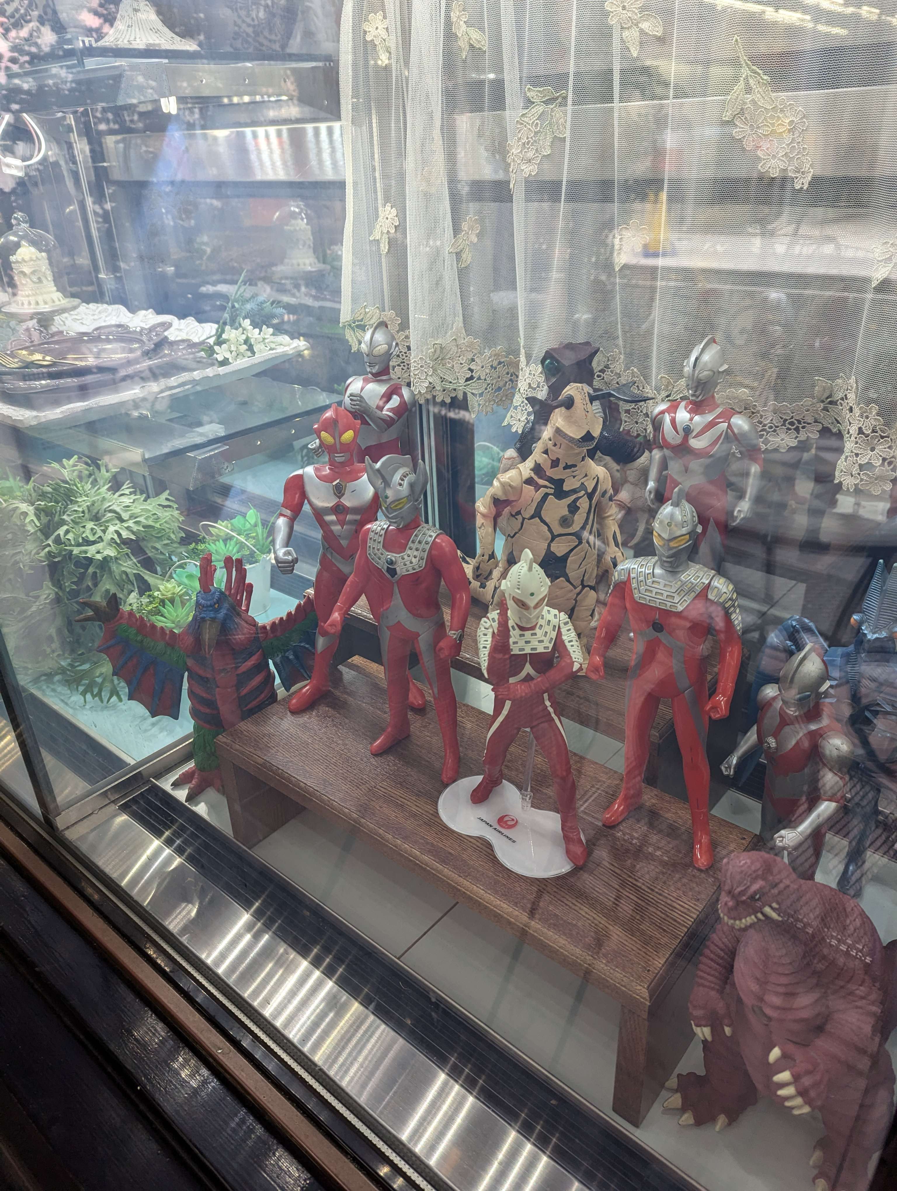 入り口脇のショーウインドーにはやはりウルトラ兄弟