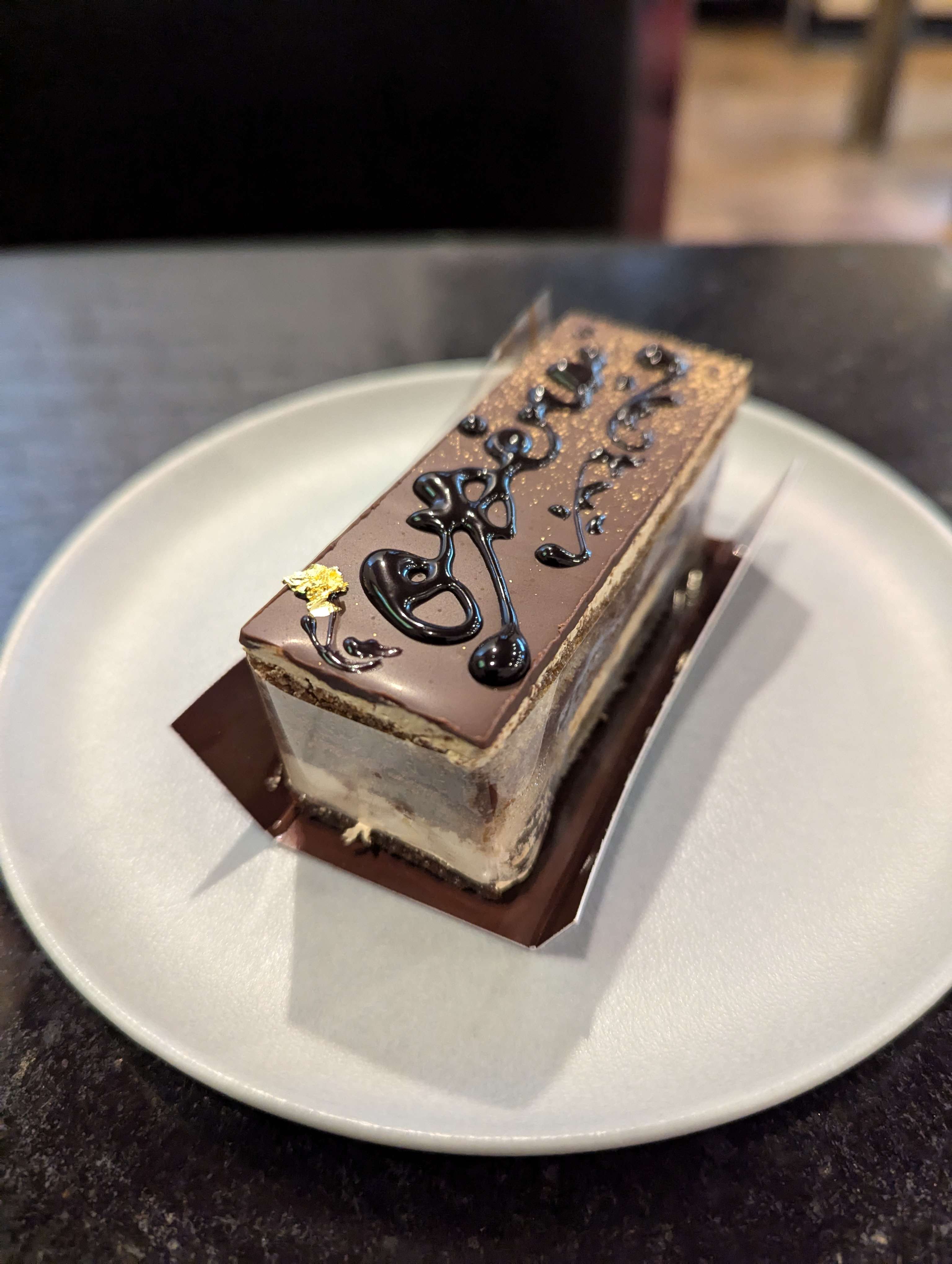 今回は、オペラとコーヒーのセットをお願いしました。ほどよい量のリキュールと金粉がのったチョコレートを愉しめました。