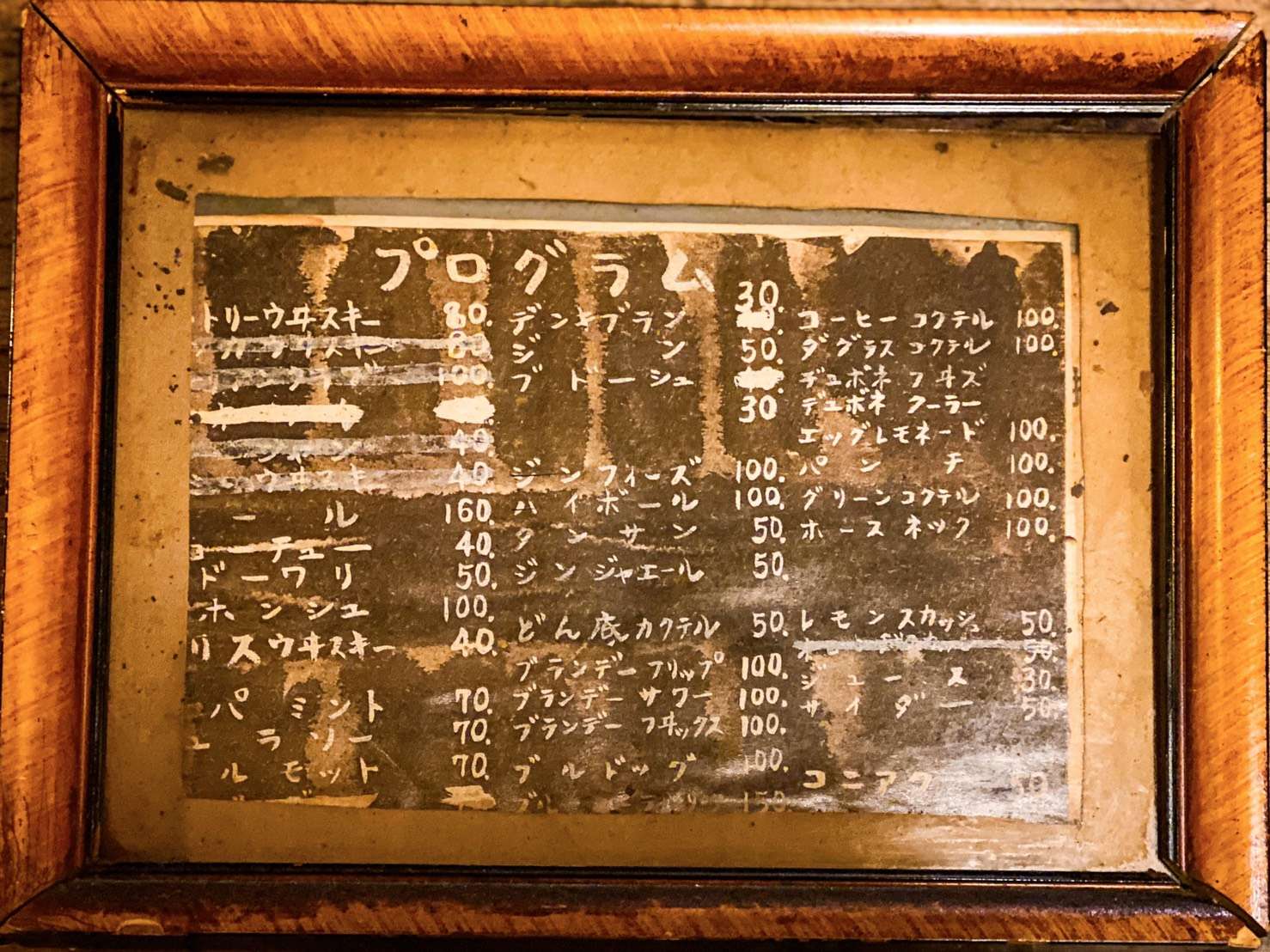 時の流れを感じるメニューは要チェック。創業当時から、このメニュー表は変わらないそう。