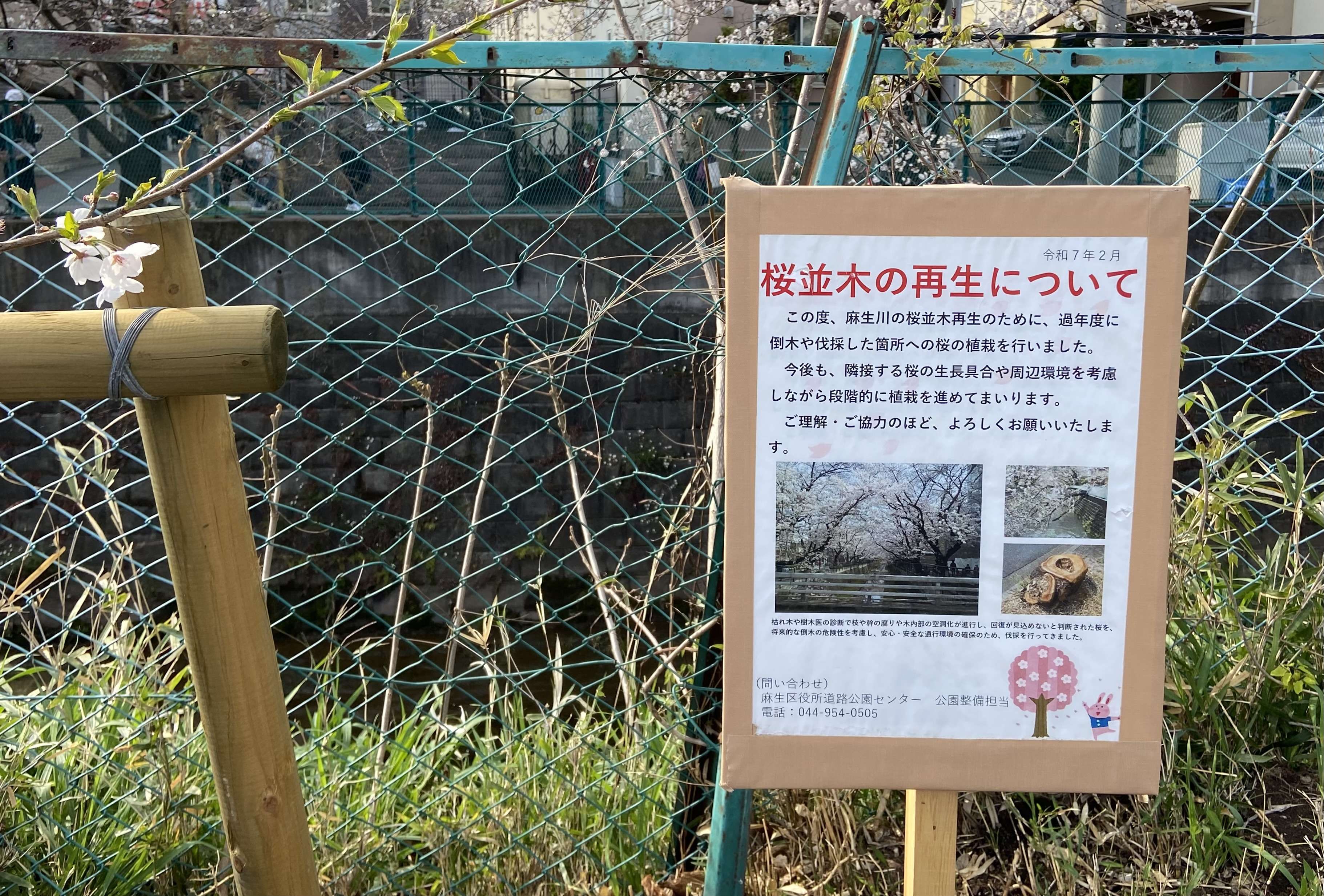3月の終わりから4月初め、新百合ヶ丘〜柿生駅間では線路に沿って流れる麻生川の桜がとても綺麗です。柿生駅前から歩いてみました。