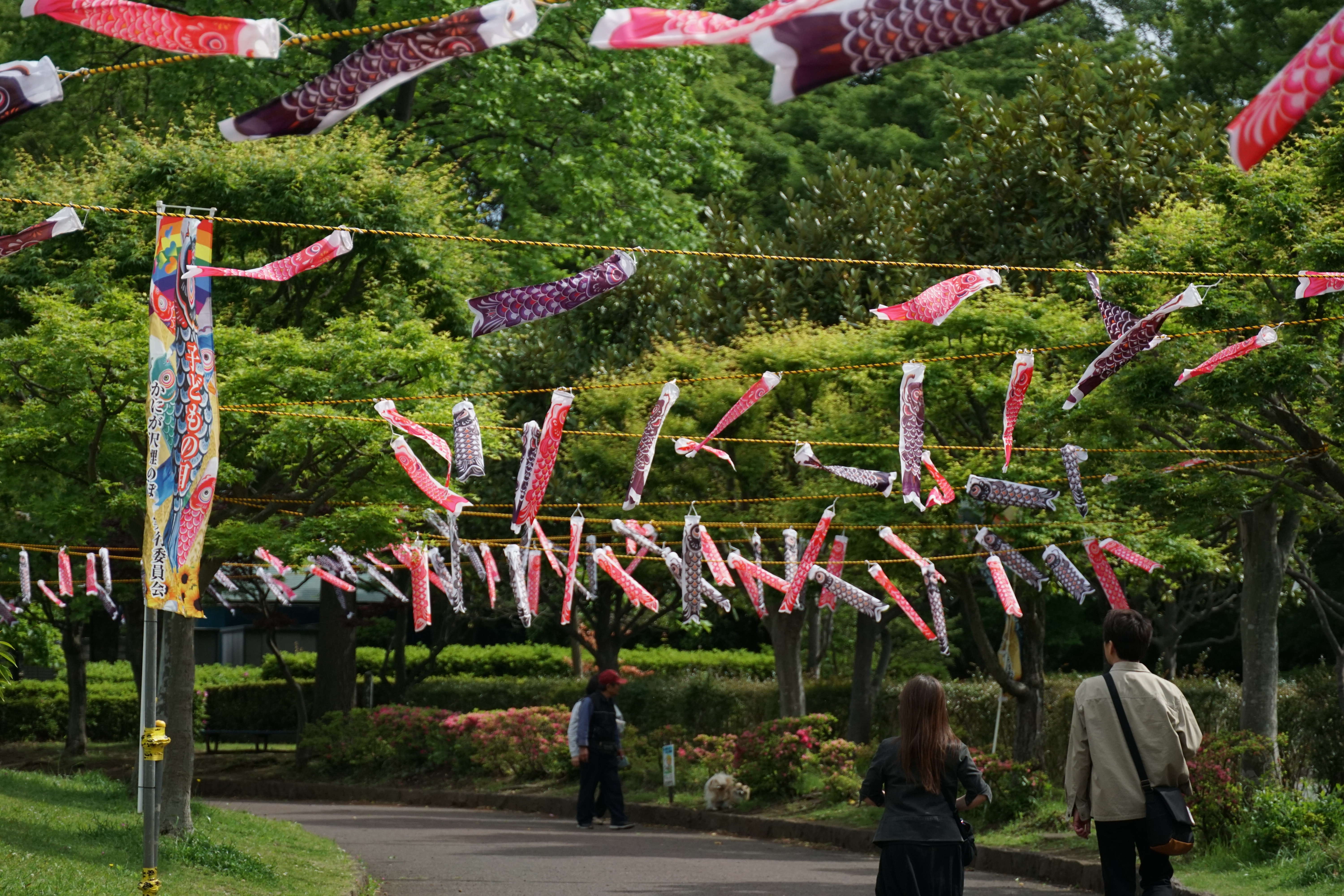 座間市のかにが沢公園に鯉のぼりが掲揚されます