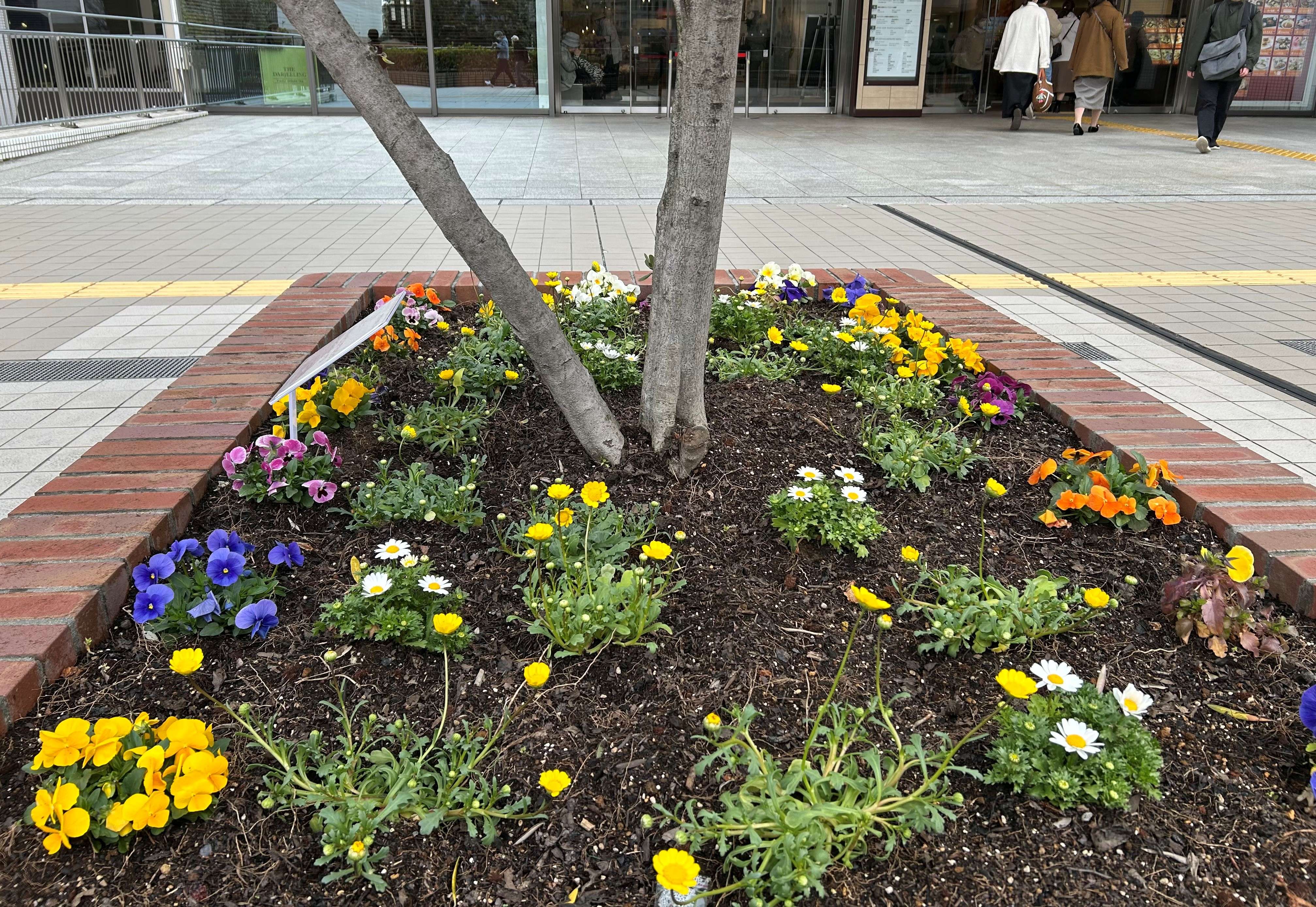 パンジーなどの苗が植えられて、今、とても綺麗です。