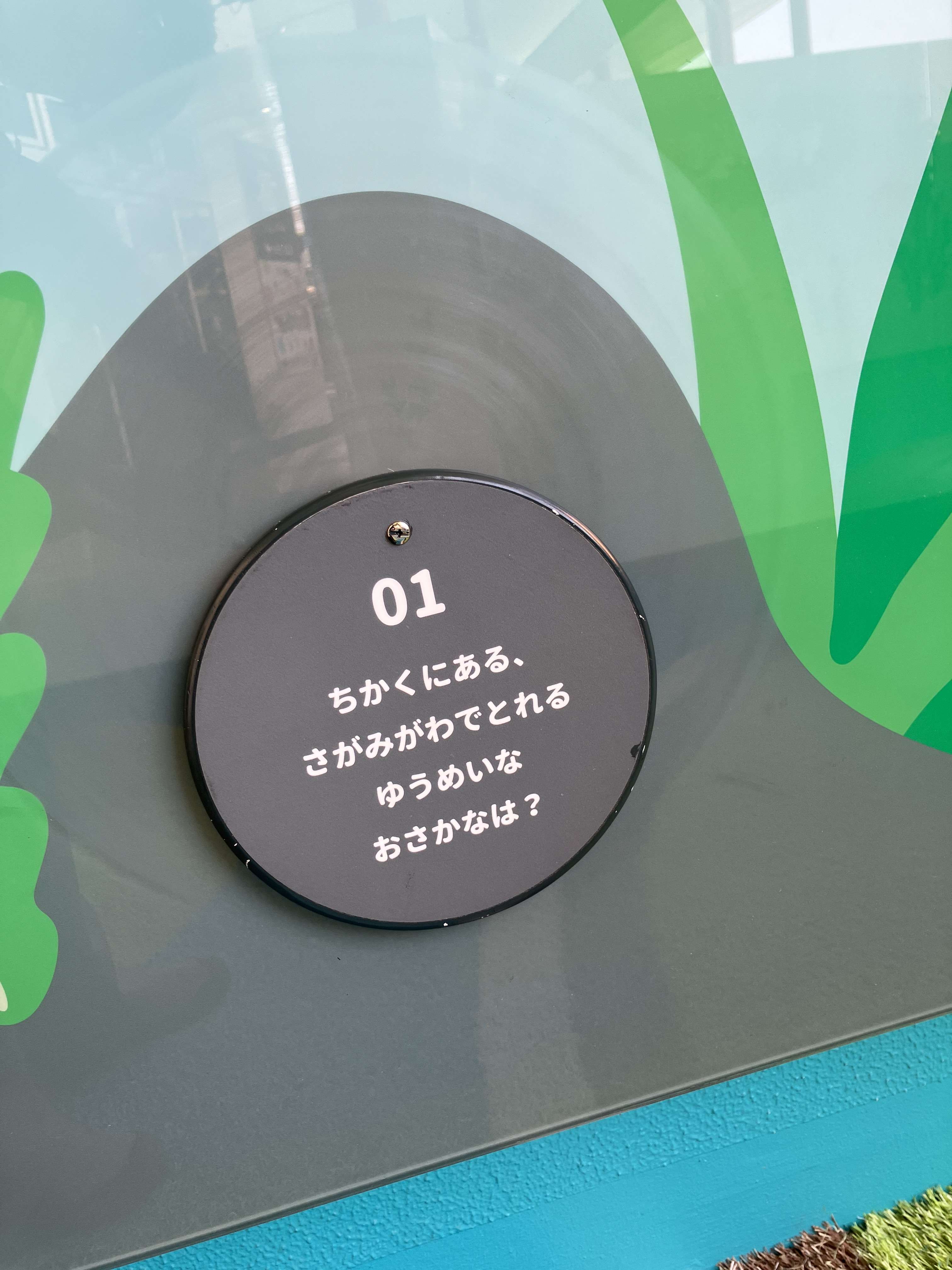 小さいスペースですが、遊びながら学べるエリアです。川や魚、自然についてのクイズもあります。ふわふわの床や、まあるいベンチなど、小さい子にも危なくないように配慮されているところが安心です。