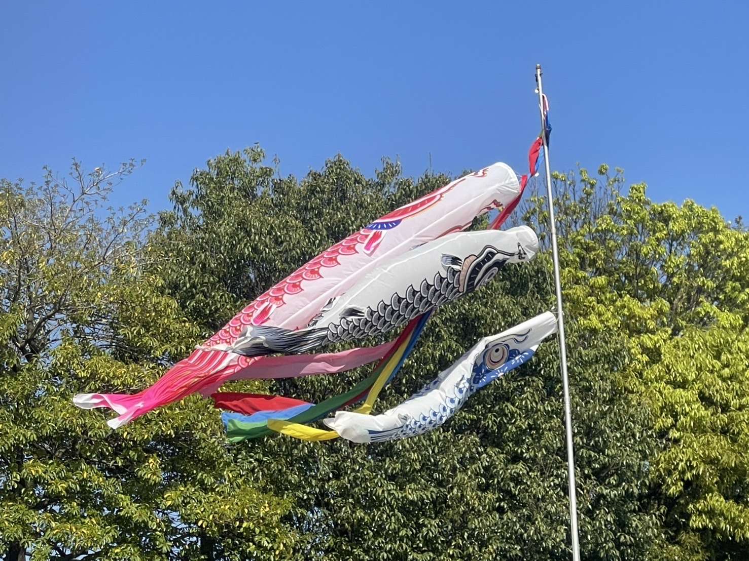 鯉のぼりにも紫や、緑、金、銀、虹色など様々な色があり見ていて飽きません。