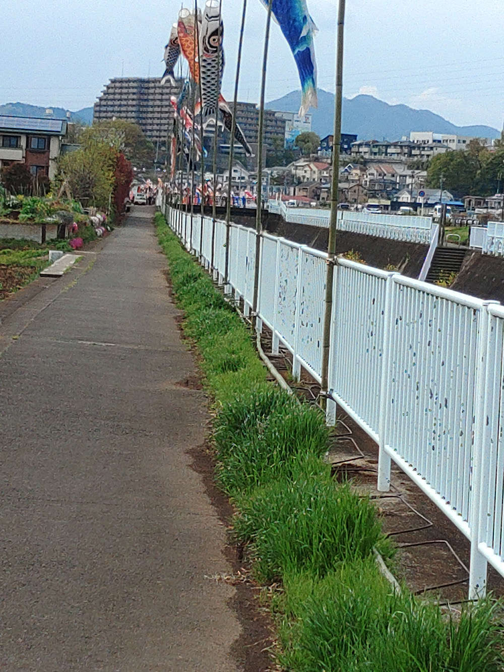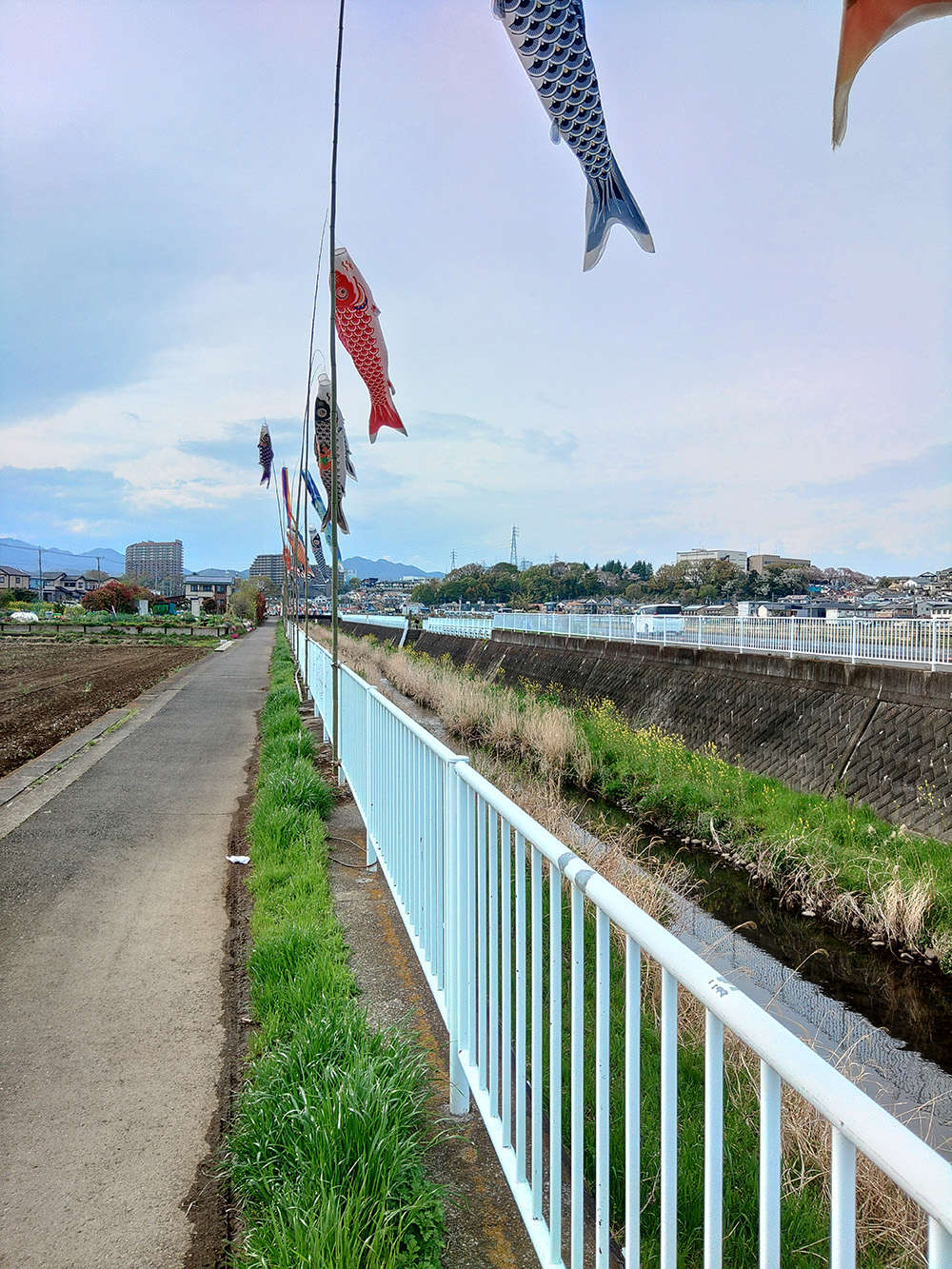周りには桜や菜の花も楽しめますが、4月終わりくらいから5月6日頃まで、こいのぼりと青空が楽しめます。