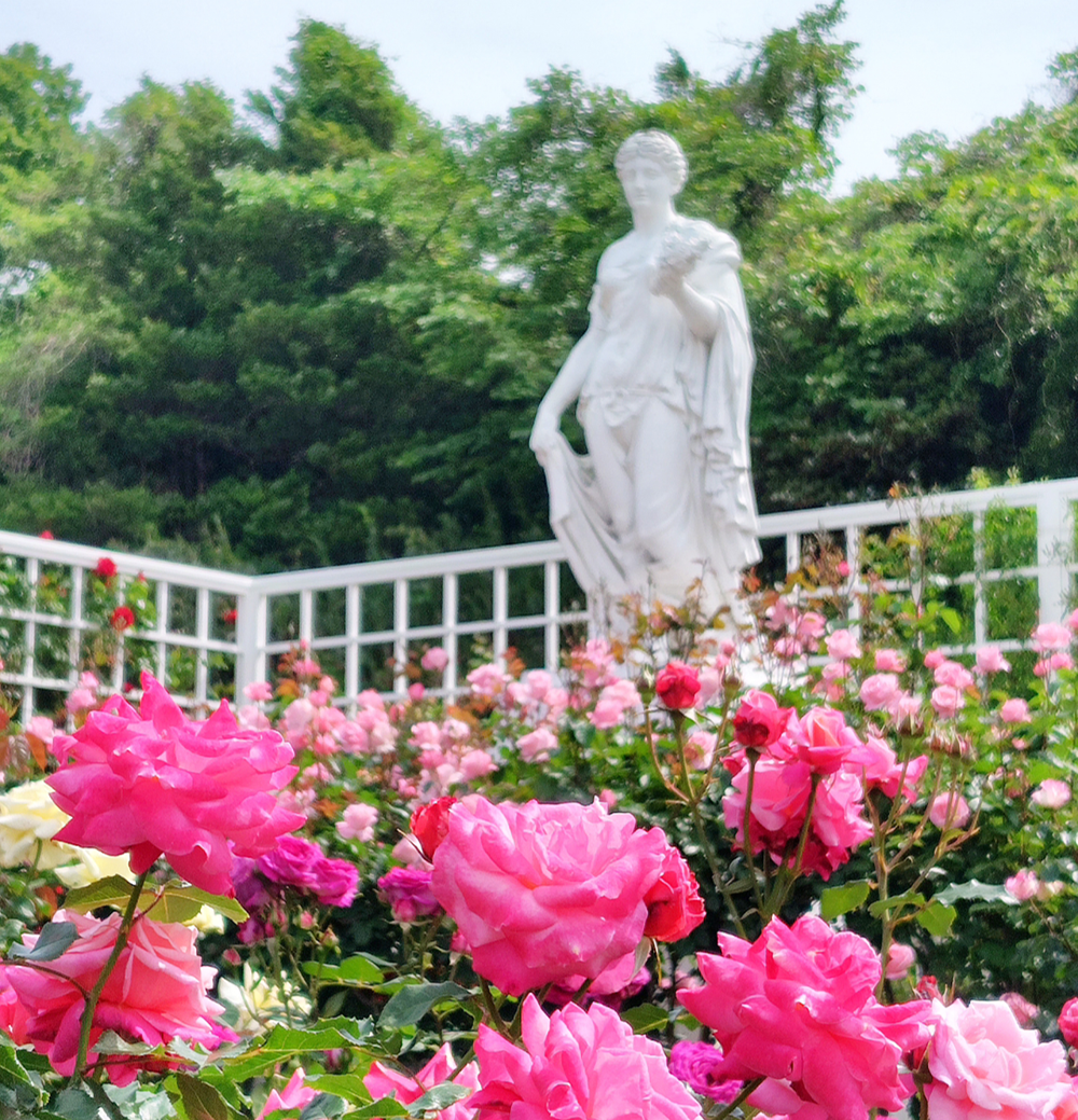 フォトスポットが多いのも魅力の一つで、ロマンチックな雰囲気を添える彫像やベンチなどもたくさん設置されています。楽しみ方がたくさんあるので、ばらマニアではない方でも満喫できるはず。ぜひ一度、訪れてみてください。