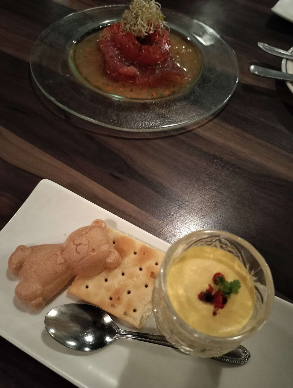新宿からは10分ほど歩く地下にあるすこし小さめのお店! インスタグラムなどでバズっていて気になっていました! 予約はしたほうがいいとおもいます! 入店してちょっとしたら満席になってました! お通しからくまちゃんのモナカがでてきてかわいい!! QRコードを読み込んでオーダーをする方式で楽でした! お料理もおいしくて、店内はすこし暗めなのでデートにもぴったりだとおもいます! カニのパスタや溶岩チーズパスタなどインスタグラムでチェックしていたものも食べれて満足です!