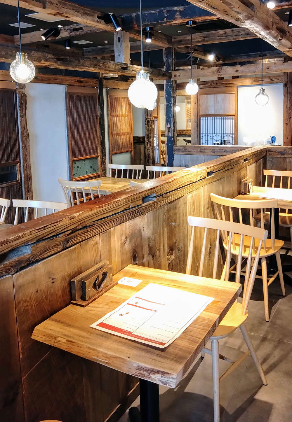 新潟から越後古材を取り寄せて作られたという店内には古いものと新しいものが優しく共存していました。