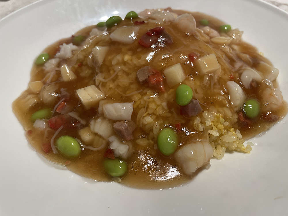 トロっとした餡がかかった福建風あんかけ炒飯。締めにいかがですか?