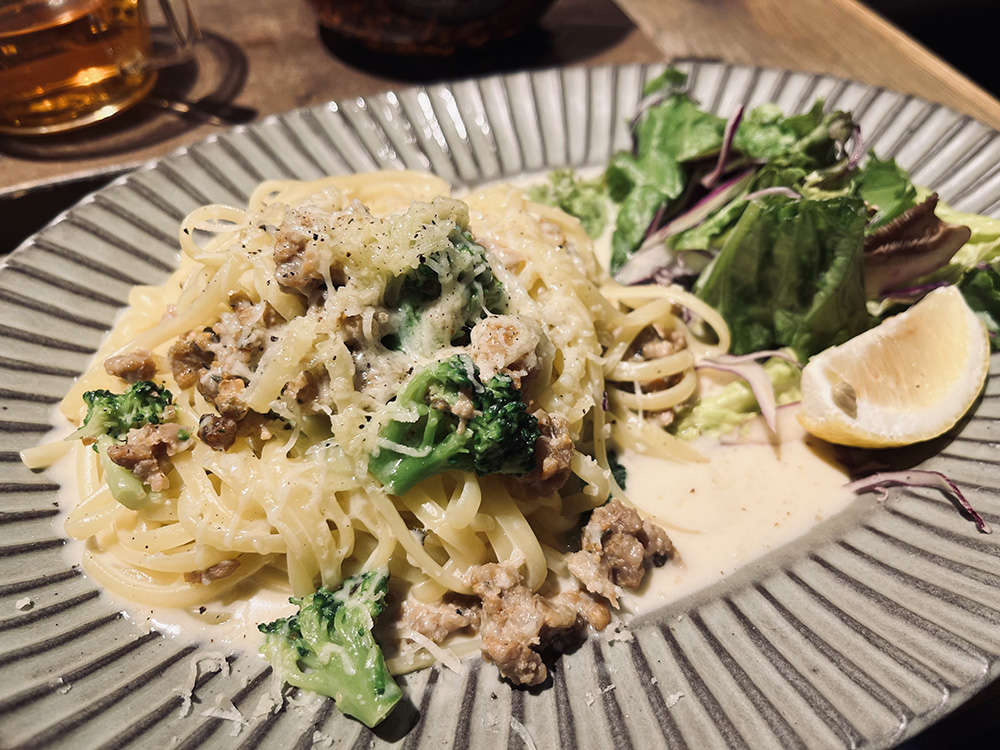 連れは「ホワイトボロネーゼ生パスタ」を注文しました。さっぱりとしたクリームソースのボロネーゼと言う感じで食べやすく、使われていた生パスタも美味しかったです!