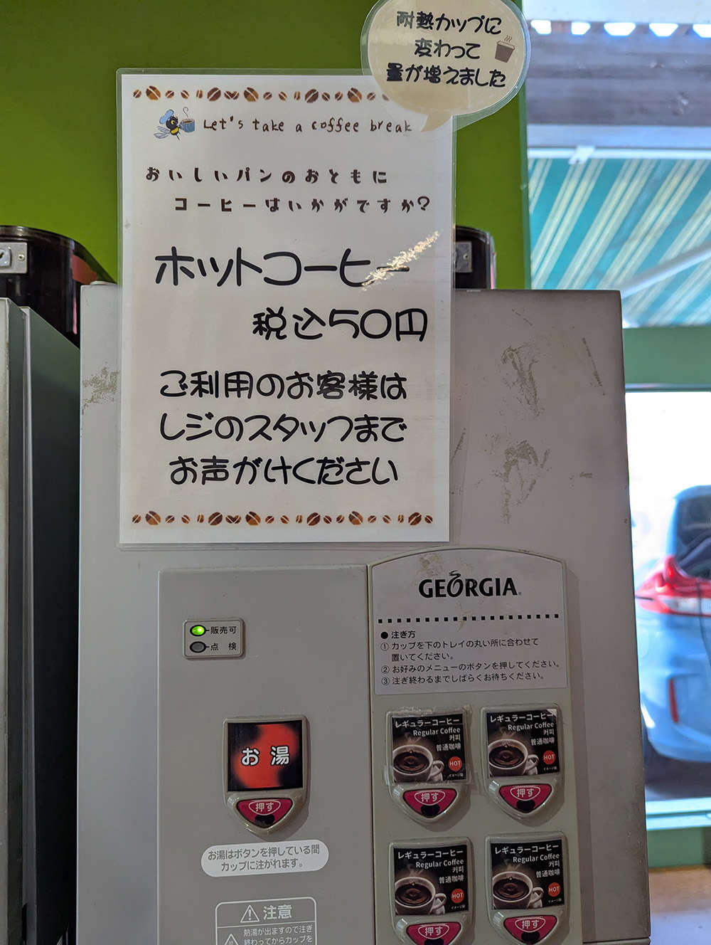 購入したパンが食べられるスペースや安価で提供されているコーヒーもあります。ランチにも最適ですね。