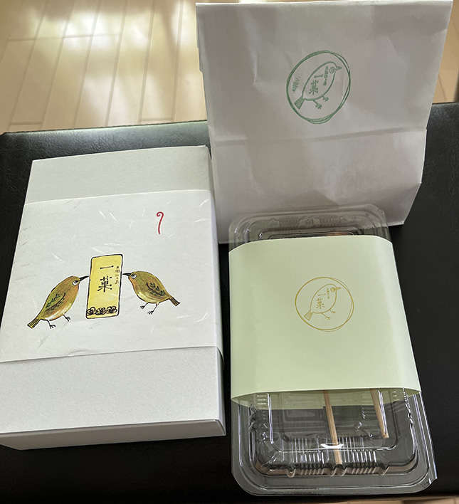 お店のシンボルマーク、めじろちゃんが描かれた包み紙が可愛い(袋、無料です)