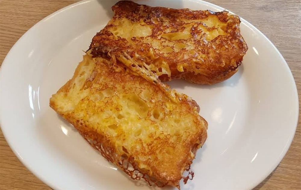 卵液がしみ込んだふわふわのフレンチトースト。スクランブルエッグがついてモーニングで650円で味わえるのはお得です。