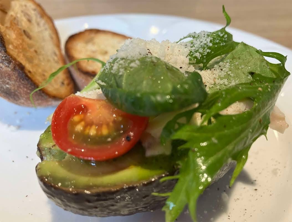 アボカドサラダのモーニング。野菜がのったアボカドがたっぷり食べられます