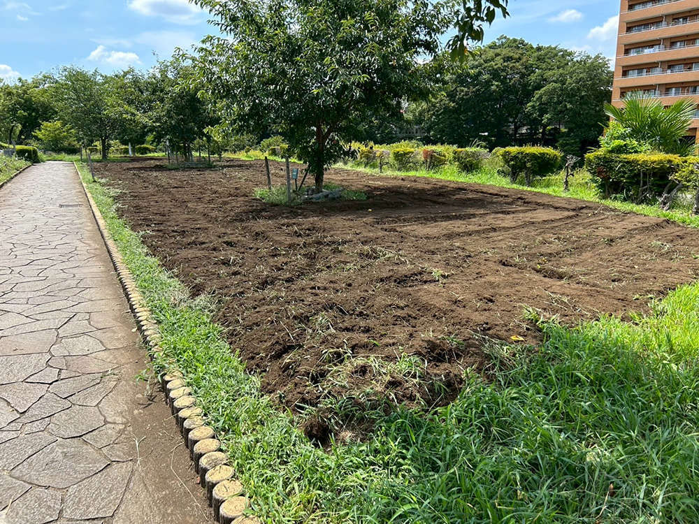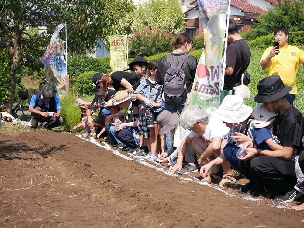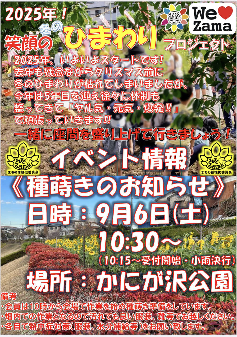 地域の『まちの活性化委員会』が参加者を募り、かにが沢公園で冬のひまわりを咲かせるために種まきを行います。