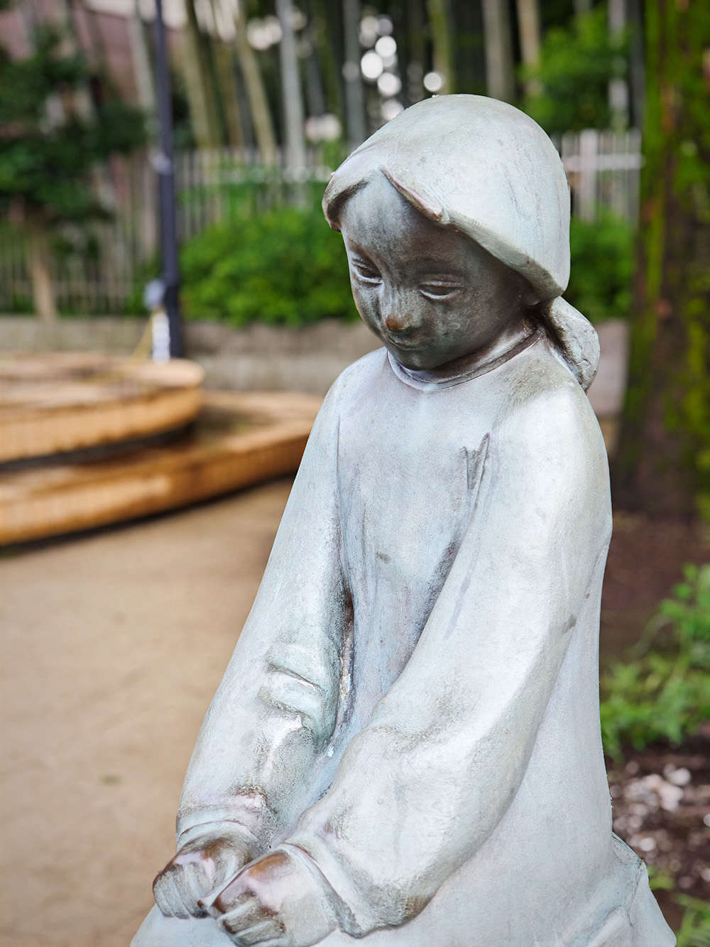 そんな万葉歌に詠まれている美しいロマンへ思いを馳せて、川辺の水面を見つめ、この流れに想いを寄せている乙女の像が狛江駅北口すぐ近くに設置されています。