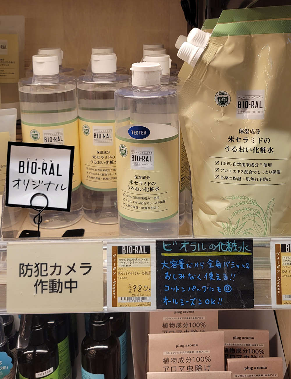 ナチュラル素材の食品も充実していますが、コスメコーナーも楽しいです。