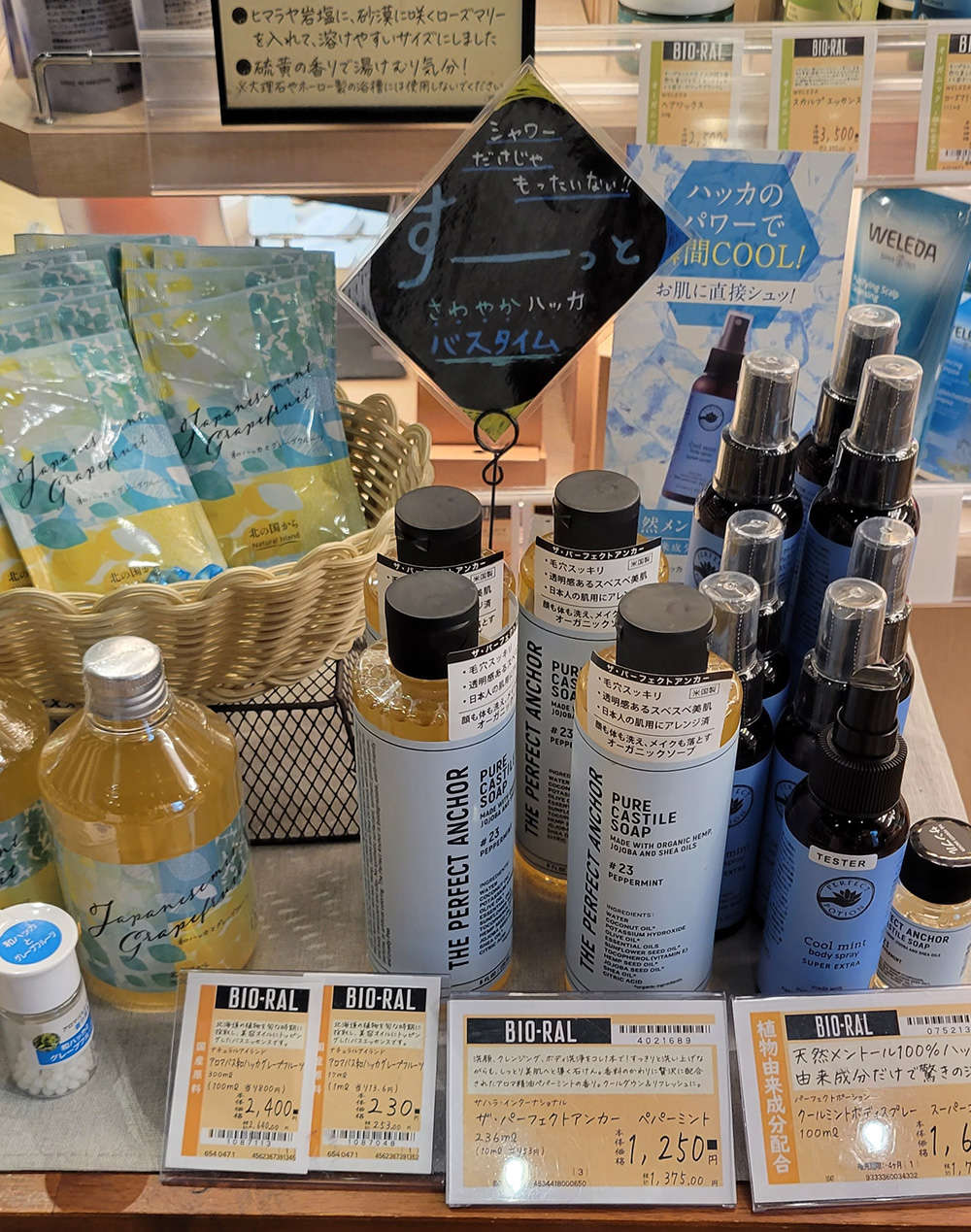 暑い時期に活躍してくれるさっぱり、すっきり系のミントやシトラス系コスメが置いてあります。